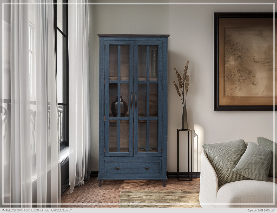| Featured-2 | Introducing the Toscana Collection, crafted from solid pine wood and meticulously finished by our artisans in vibrant, bold colors accentuated with gold hardware. This statement piece is designed to elevate your space, helping you achieve the ambiance of your dreams.Crafted of solid pine wood.Two-tone, multi-step lacquer finish. Deep blue on the body and natural brown on top and legs.Mortise and tenon construction offers stability and durability.English dovetail on 100% solid wood drawer fronts. Hafele steel slides.Glass doors equipped with magnetic catches.Custom metal handles with non-chip finish. | |