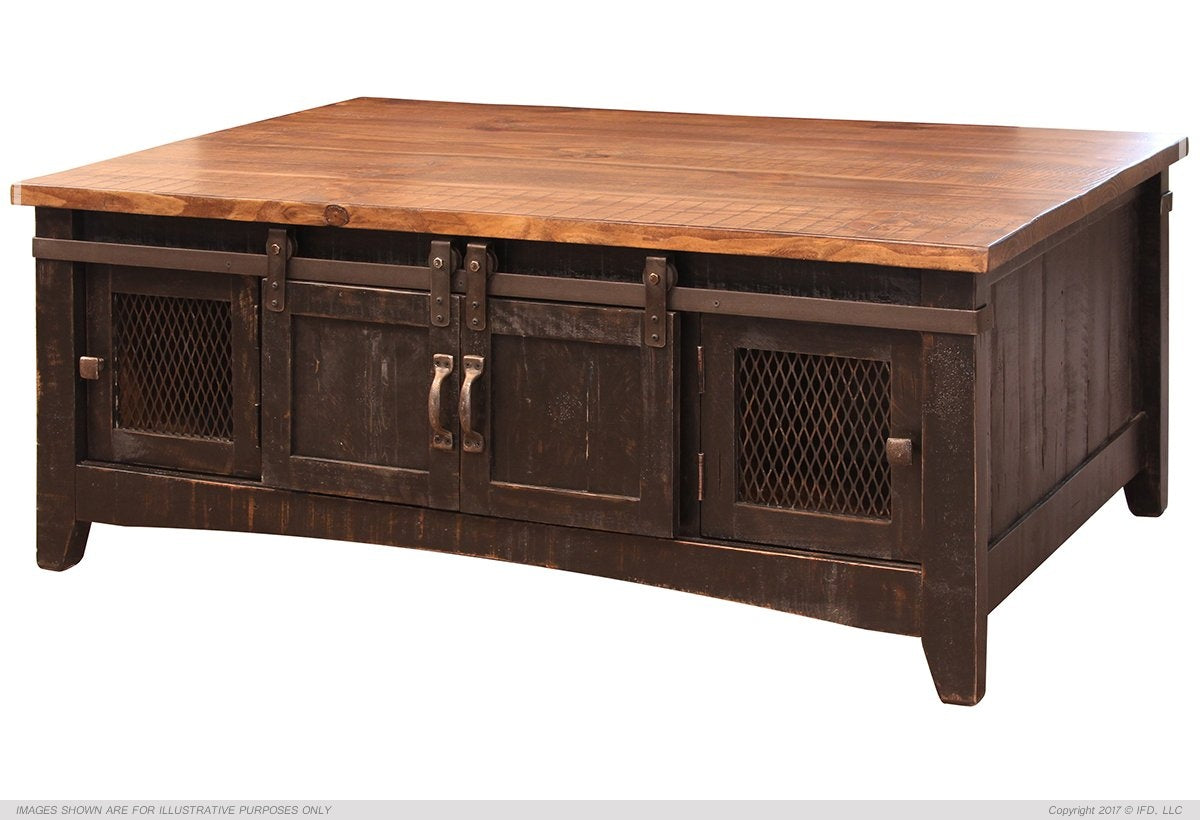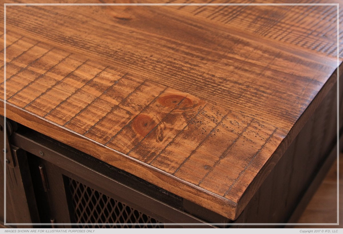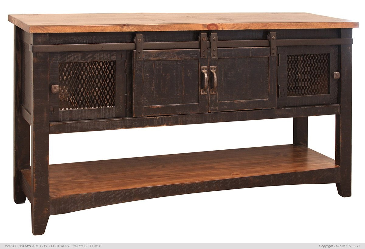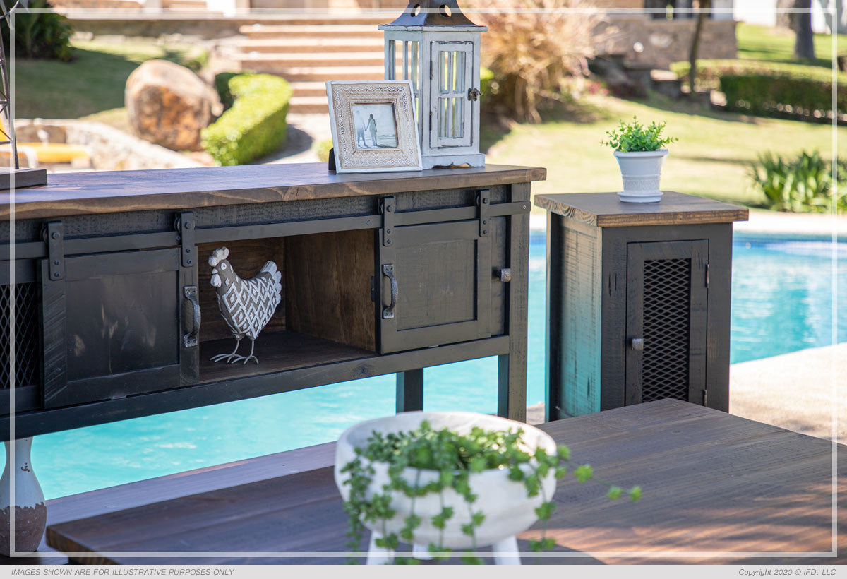 | Featured-2 | · Featuring 100% solid pine.· Multi step Black finish on distressed wood. Tops feature a medium brown stain that provides depth and character to solid pine.· Solid tops are floated to allow for woods natural movement.· Barn doors with functional rolling mechanism add a unique look.· Side doors feature metal mesh on panels add rustic industrial appeal. | |