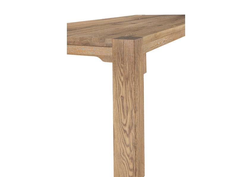 The Gathering table is crafted from solid American Oak. Design features include exceptionally proportioned 5.25 inch table top and apron. The 5 inch solid oak legs protrude through the table top creating a unique and interesting dining surface.