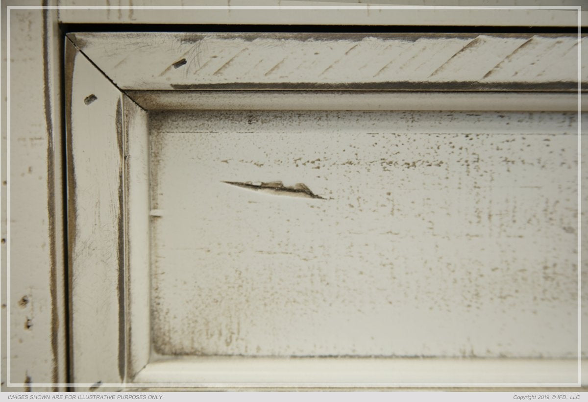 | Featured-3 | 2. Two tone, multi-step lacquer finish. Tops feature weathered gray finish on hand- distressed wood. Eggshell antiqued finish on the rest of the case pieces. | |