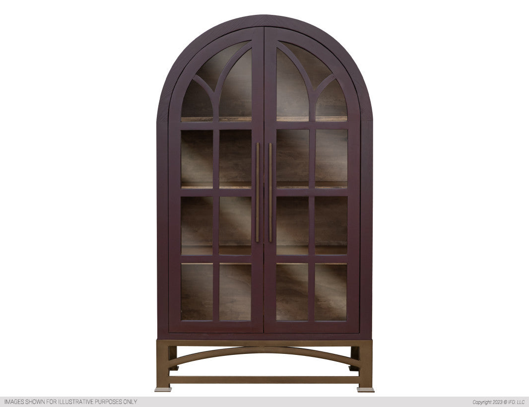 | Featured-2 | Drawing inspiration from Mid-18th century French furniture, our Obsidian cabinets seamlessly blend the charm of the old world with contemporary design. Crafted from lightly distressed pine wood and elegantly set within a metal base, this cabinet features a beautifully paneled oval glass door, making it a timeless addition to your home.Crafted of solid pine wood.Multi-step lacquer in plum finish.Mortise and tenon construction offer stability and durability.Two arched glass doors with magnetic catches.Three shelves.Metal pulls and base in a bronze finish. | |