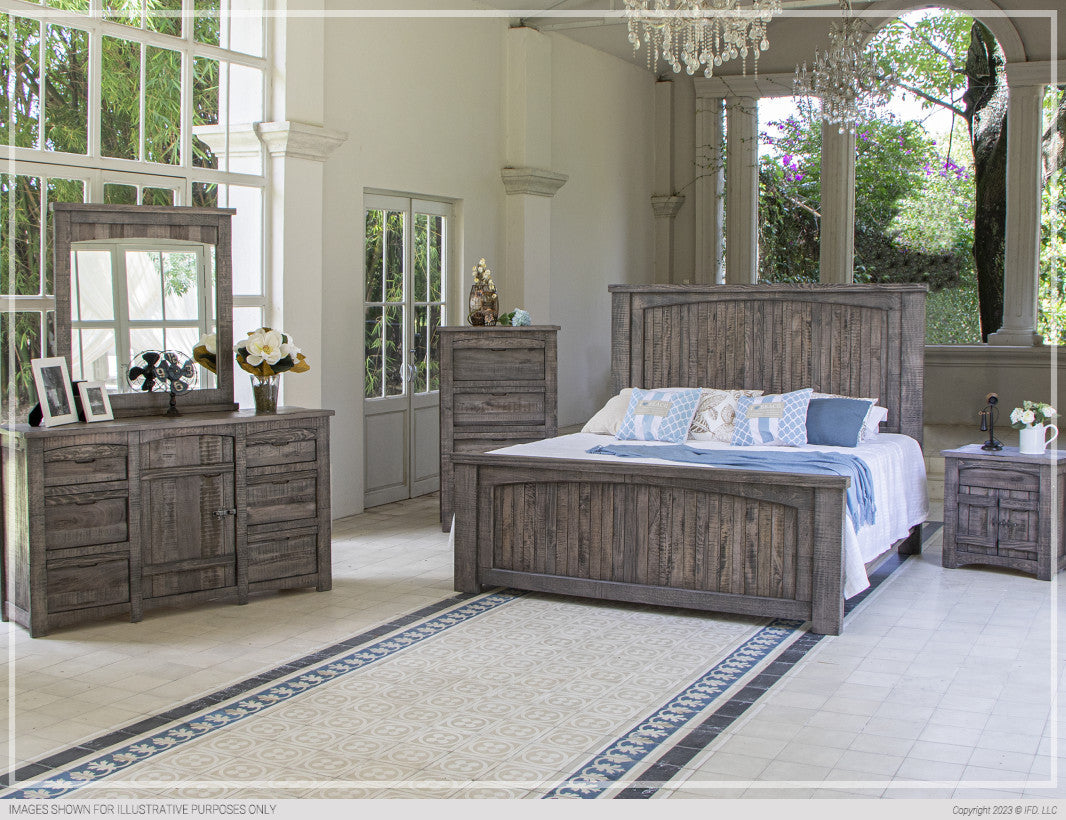 | Featured-2 | Featuring mango and solid pine construction. Mango is a durable and eco friendly species sourced from sustainable plantations. Multi-step lacquer finish provides protection and depth to the wood. Hand-brushed, distressed wood adds authentic rustic charm. Mortise and tenon construction ensure stability and durability. Microfiber-lined top drawers on Dresser and Nightstand. Wrought-iron hardware. English dovetail joinery on solid wood drawer fronts. Ball-bearing Haffele metal glides offer superior stability and smooth glide to drawers. Available in Queen & Eastern King Sizes. Requires a box spring. | |
