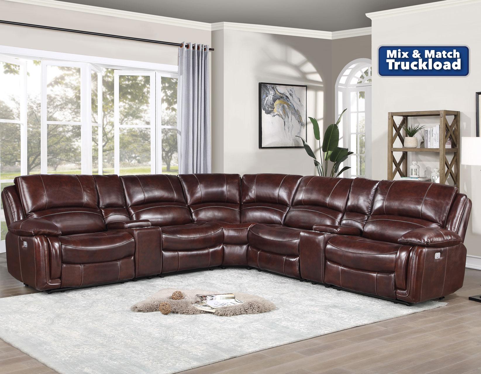 Denver Dual-Power 6-Piece Leather Sectional, Brown