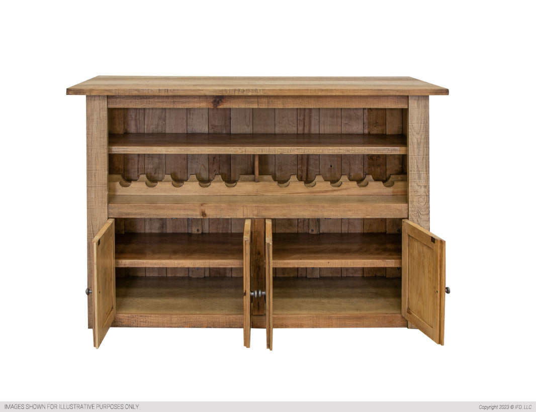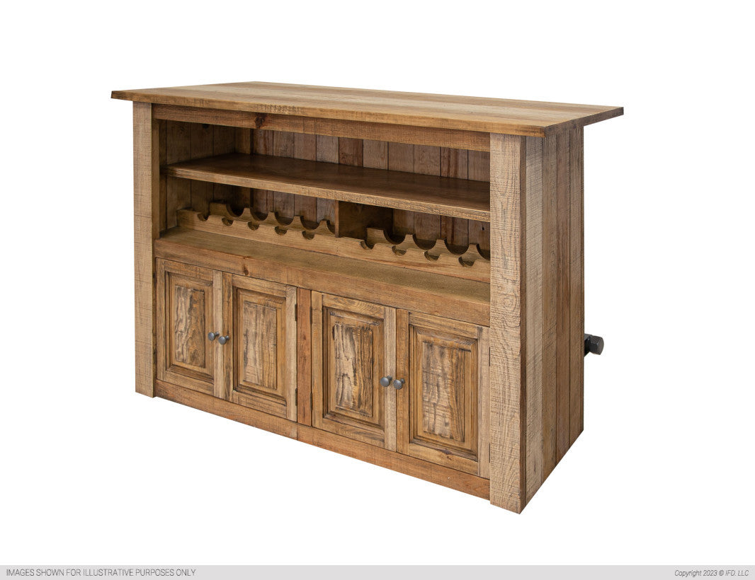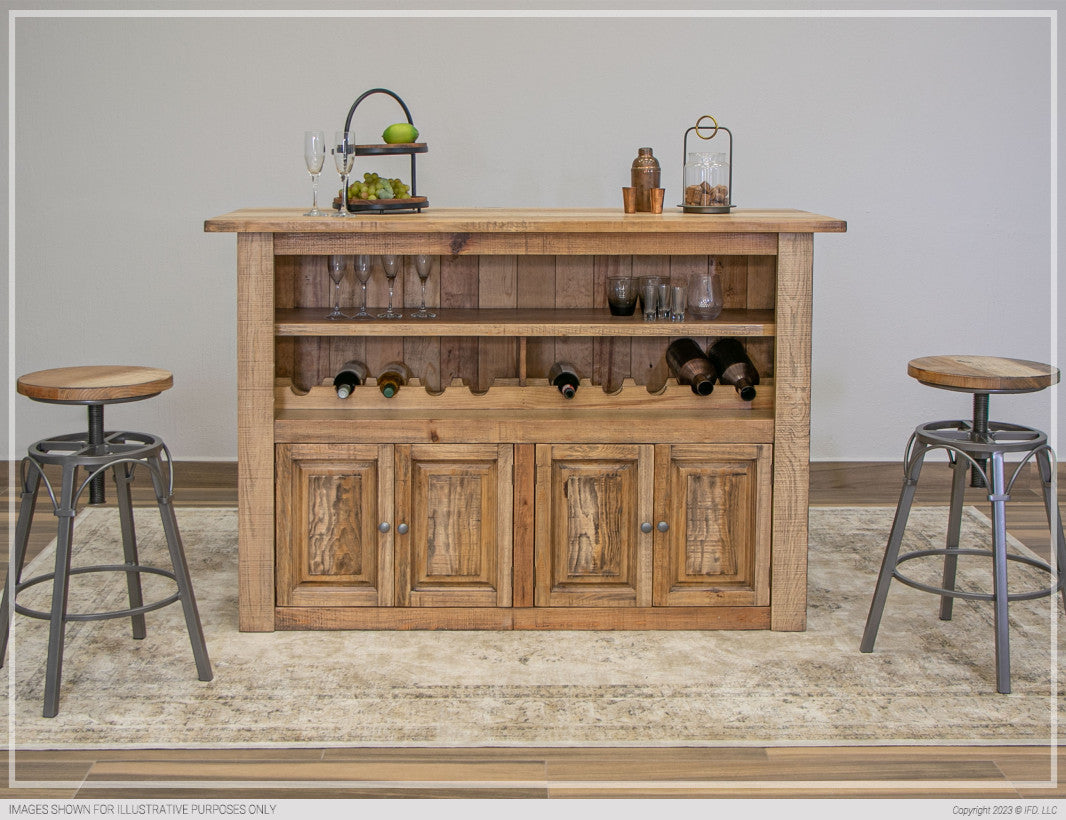 | Featured-2 | The Marquez Bar is made from high-quality pine and is offered at an excellent value.Floated top construction and finger joints on each slab help avoid seasonal cracks.Seven-step, hand-applied, two-tone finish.Mortise and tenon construction ensure stability and durability on all pieces.Fixed shelf behind each door.Floated top construction and finger joints on each slab help avoid seasonal cracks.Ships KD.The overhang for comfortable seating accommodates 3 stools (sold separately).Custom pulls with non-chip finish.The wine rack holds up to 10 bottlesMetal footrest.IFD1141STL243024-30" Adjustable Swivel Stool features a solid wood seat and metal frame.Ships fully assembled, packed one per box. | |