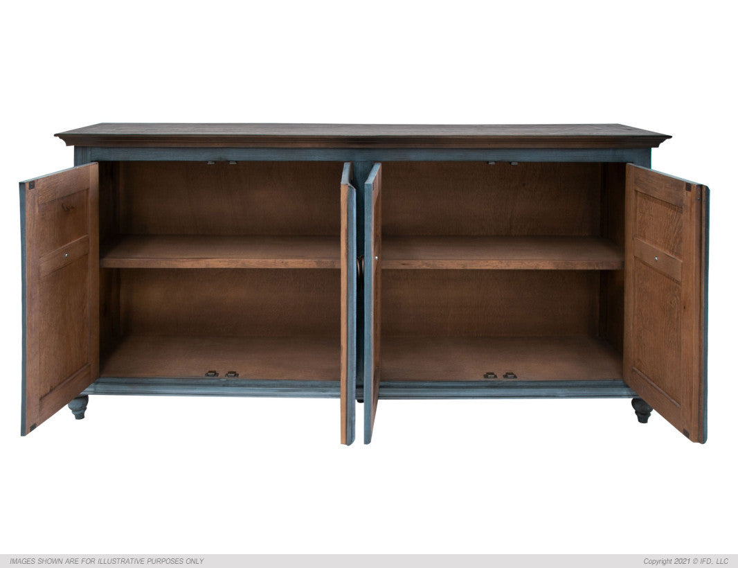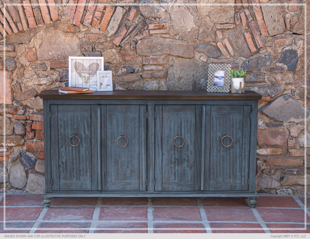 | Featured-2 | · This best-selling console is now available in NEW, two-tone finishes: olive green and blue.· Multi-step lacquer finish on wire-brushed solid pine provides a striking and elegant look .· Mortise and tenon joinery provides stability and durability.· Magnetic catches.· One fixed shelf.· Ring pulls in an antique-brass finish are hand forged.· Reinforced door panel construction for added durability and stability.· Turned feet ship unassembled for protection. | |