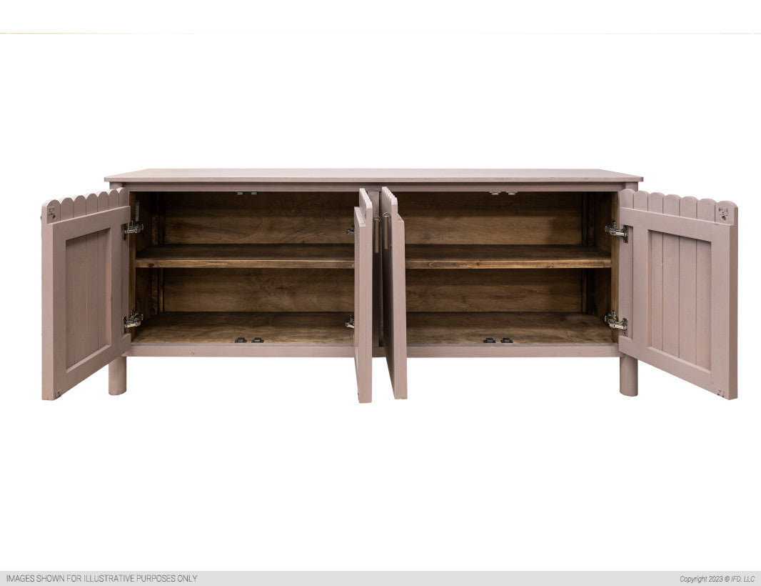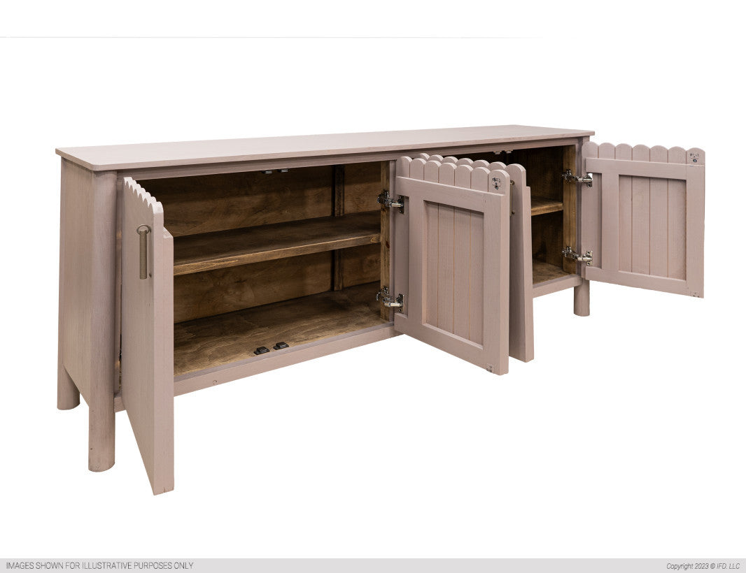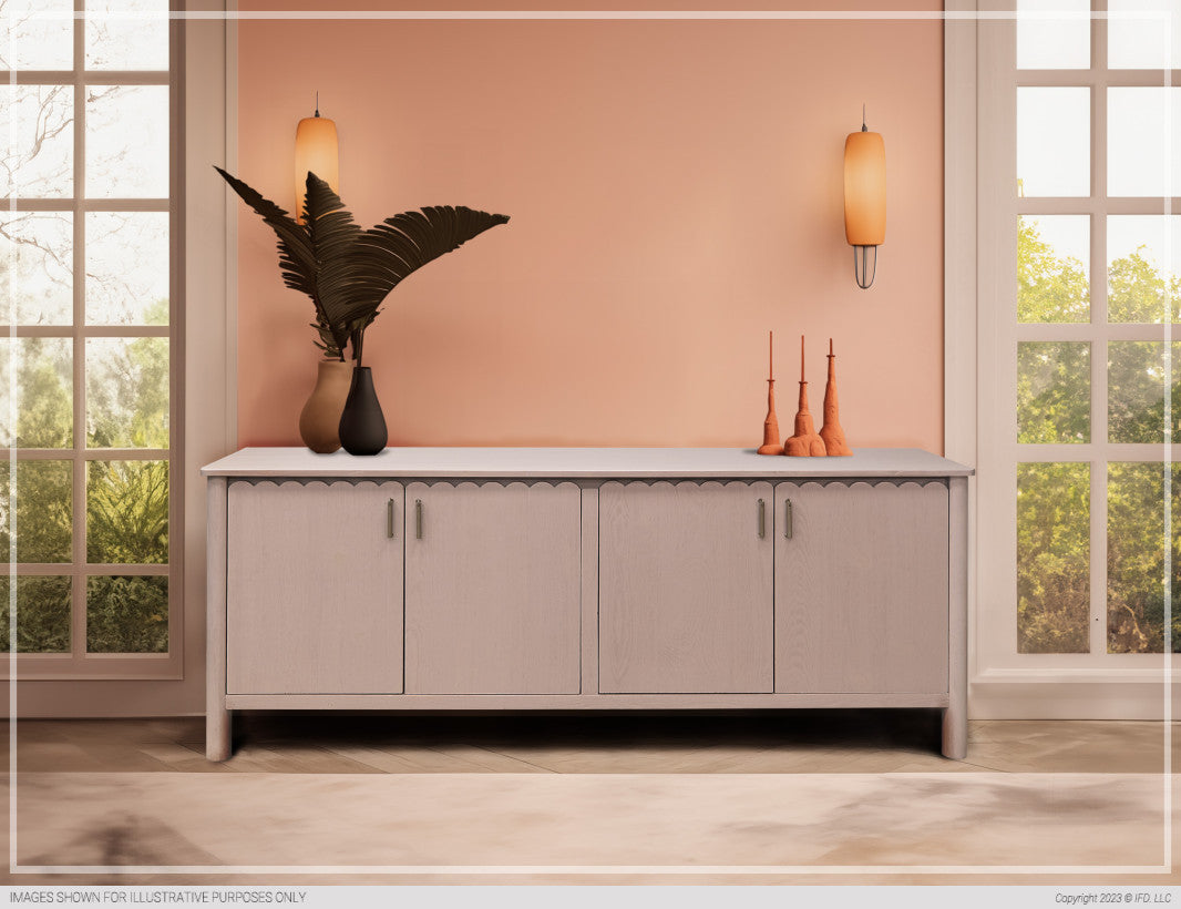 | Featured-2 | Introducing The Jazmine Consoles. Inspired by coastal style, this collection is perfect for adding a chic and colorful touch to your space.Crafted of solid pine wood.Finish is achieved through a multi-step lacquer in a misty mauve tone.Mortise and tenon construction offer stability and durability.Four doors with magnetic catches.Fixed shelf behind doors.Custom metal pendant handles in a gold finish. | |