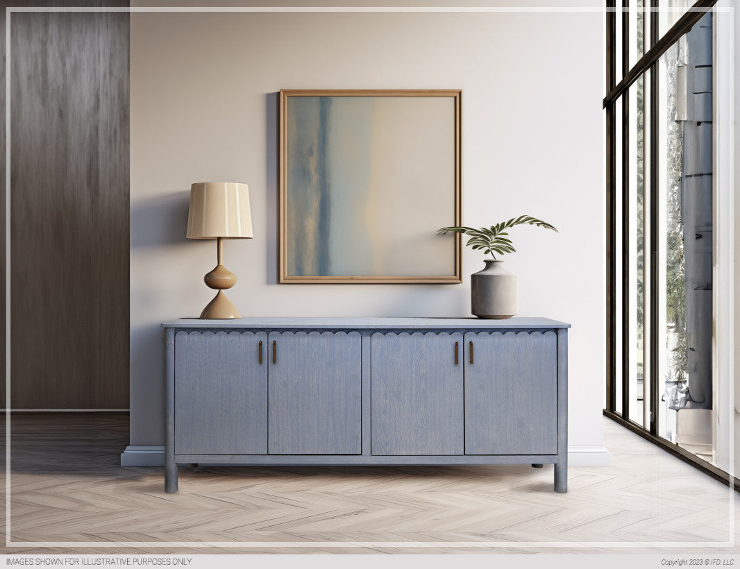 | Featured-2 | Introducing The Jazmine Consoles. Inspired by coastal style, this collection is perfect for adding a chic and colorful touch to your space.Crafted of solid pine wood.Finish is achieved through a multi-step lacquer in a vintage blue tone.Mortise and tenon construction offer stability and durability.Four doors with magnetic catches.Fixed shelf behind doors.Custom metal pendant handles in a gold finish. | |
