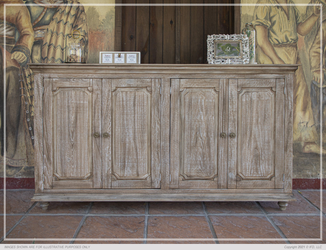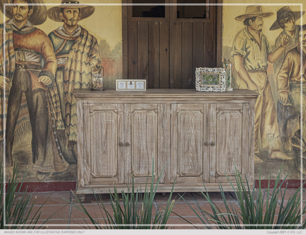 | Featured-2 | This uniquely designed accent console/ cabinet is built with sustainable mango and pine wood. Multi-step, lacquer Sand Drift finish protects the intrinsically wire-brushed wood Available in 8 different finishes, this cabinet is the perfect addition to any home. Mortise and tenon joinery provides stability and durability. Four raised-panel doors with magnetic door catches. Two fixed shelves Cast-iron knobs feature a textured antique gold finish. Turned feet ship unassembled for protection. | |