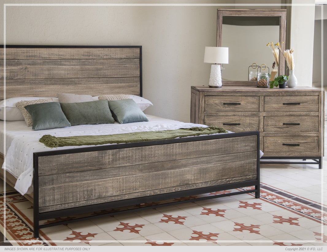 | Featured-2 | This collection features solid mango & pine wood for a beautiful natural grain contrast. 13-step lacquer finish provides protection and a smooth. A translucent light brown finish on a hand disstresed wood. Solid wood tops are floated to allow for wood’s natural movement. Mortise and tenon joinery on solid wood frames ensure stability and durability. Solid wood drawers feature English dovetail joinery on drawer fronts. Extension metal glides provide a durable and effortless glide. Microfiber-lined top drawers on dresser and nightstand. Transitional bases on case-goods constructed in metal offers a mixed media look at a value. Non-chip, custom pulls are durable and unique. Available in Queen, Eastern King and California King Sizes. Box spring is NOT required. | |