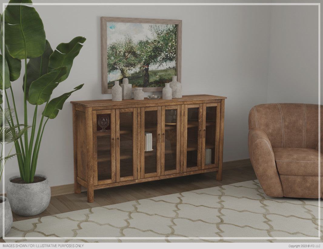 | Featured-2 | Introducing the Olimpia console. This exceptional piece is handcrafted from sustainably sourced Mango wood, guided by a design philosophy that seamlessly combines minimalist elegance with the comforting embrace of nature's raw influence. Its gently curved and elegant lines effortlessly transform any room into a warm and cozy space.Sustainable Mango Wood.Multi-step lacquer coating on top protects the natural tone of the wood.Mortise and tenon construction ensure stability and durability on all pieces.Six glass doors with metal pendant pulls with a gold finish.Magnetic door catches.Two fixed shelf behind glass doors.The knots on the wood's surface are natural markings that give each piece of lumber its unique identity.Please keep in mind that wood can respond to humidity changes, which might lead to plank movement or minor cracks in your furniture, especially during the initial 6-12 months of ownership. Rest assured, this is a normal occurrence with solid wood items and won't impact their strength or longevity. | |