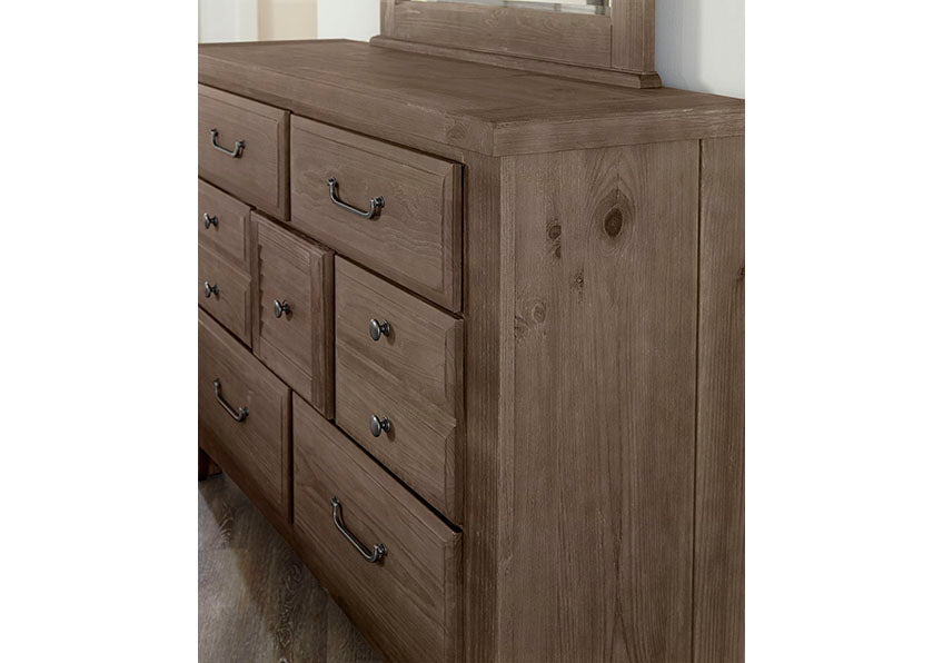 Transitional styling and a slight rustic charm combine to create the simple, yet attractive look of this seven drawer dresser. Antique pewter finished hardware elevate the vintage look of this piece, bringing a feeling of comfort and belonging into your bedroom.