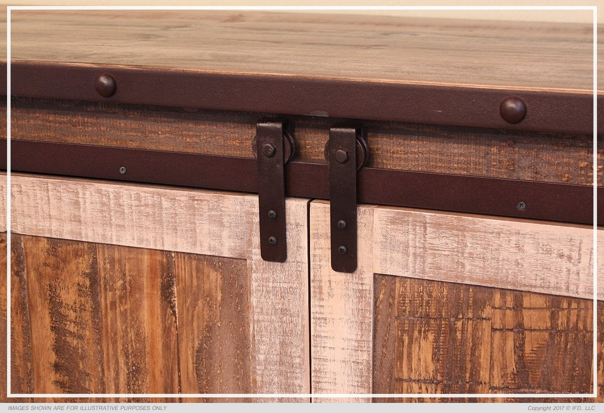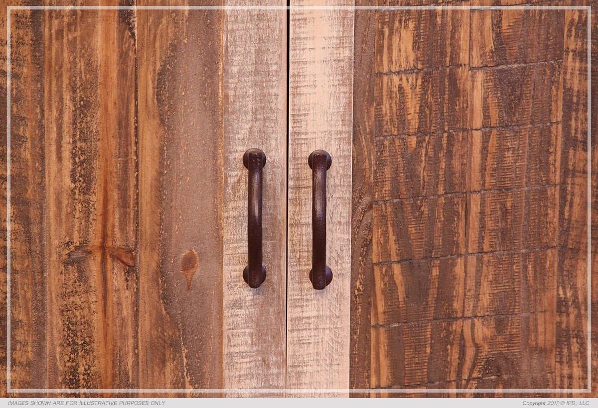 | Featured-8 | 7. All pieces feature hand-wrought metal band around top. 8. Hand-wrought handles on doors. 9. TV stand sizes: 60", 70" and 80" wide. | |
