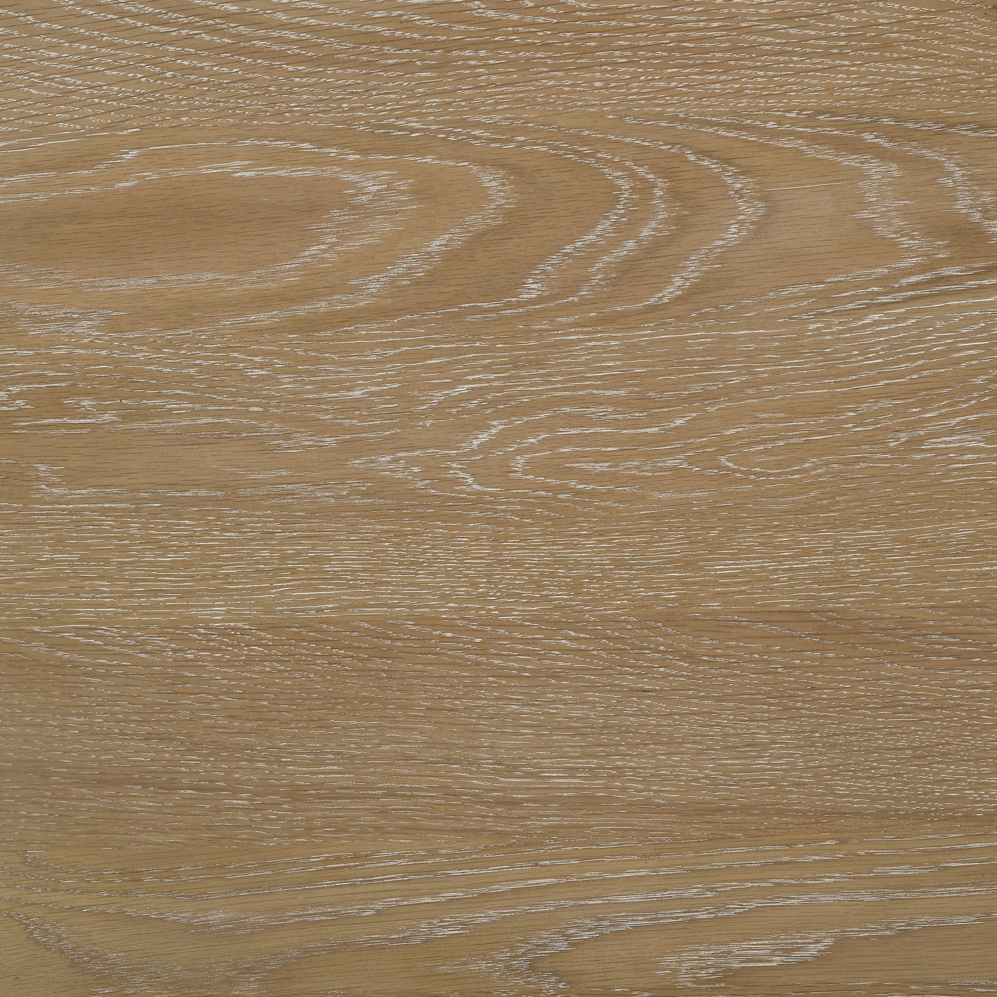 • Dining table with a distressed light brown finish for a soft, elegant aesthetic