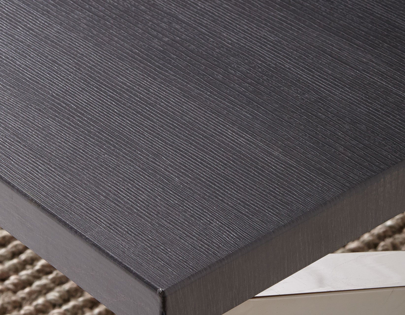 The Aegean Cocktail Table is an example of brilliant contemporary geometrical design and impeccable craftsmanship. Streamlined in design, the square top focuses on architectural excellence while being highly functional. This stylized table has nickel plating that is polished to a gorgeous black nickel finish. The modern top on this table is crafted from Silver shield 3D PVC laminate that ensure its beauty and durability. This geometrical styled table adds a very refined urban feel to your living room.