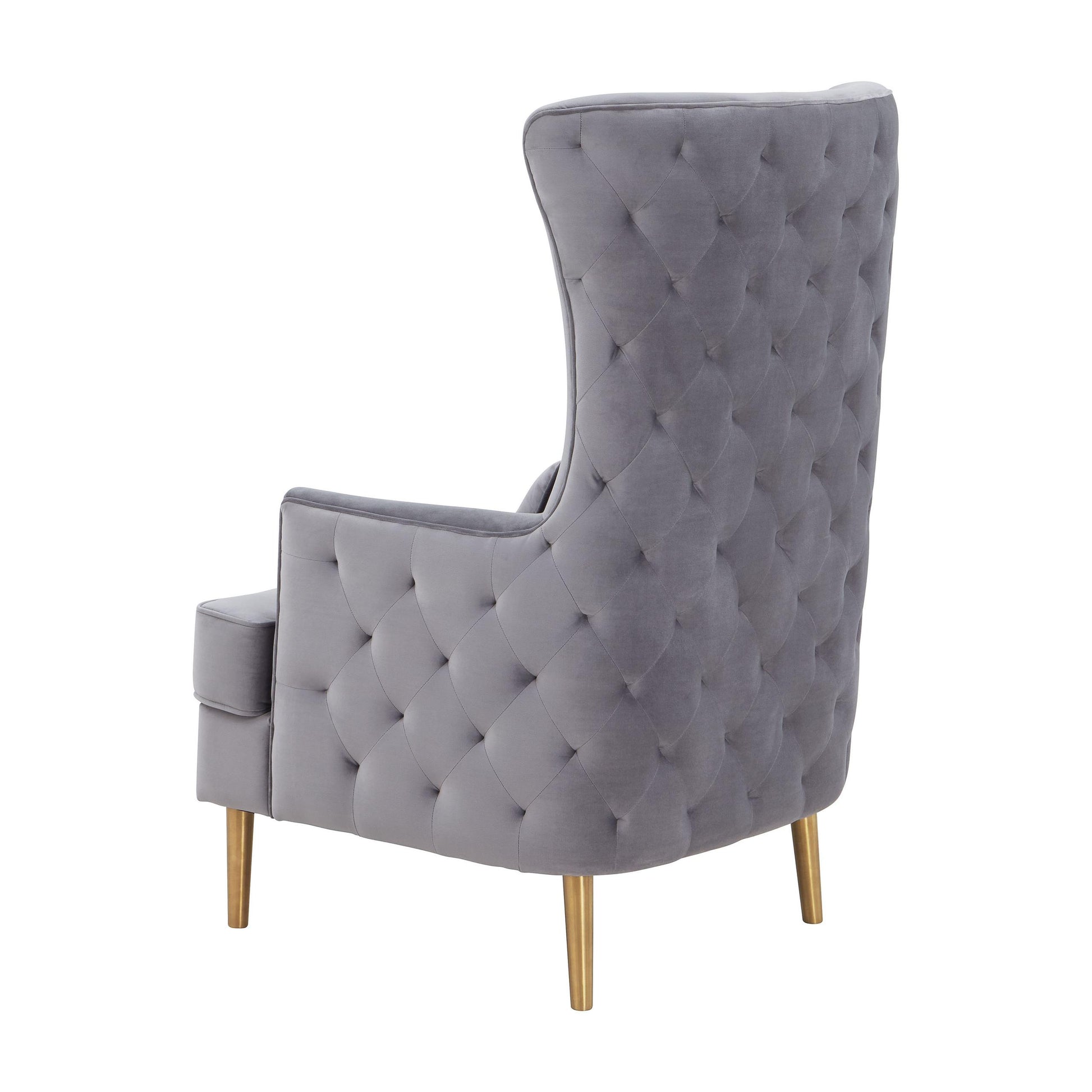 Boasting a high back, rich upholstery and diamond button tufting, the Alina chair adds flair to any room with an authoritative presence. Designed in collaboration by Inspire Me! Home Decor and TOV, this impressive wingback chair is available in multiple popular colors and complemented by brushed gold legs.