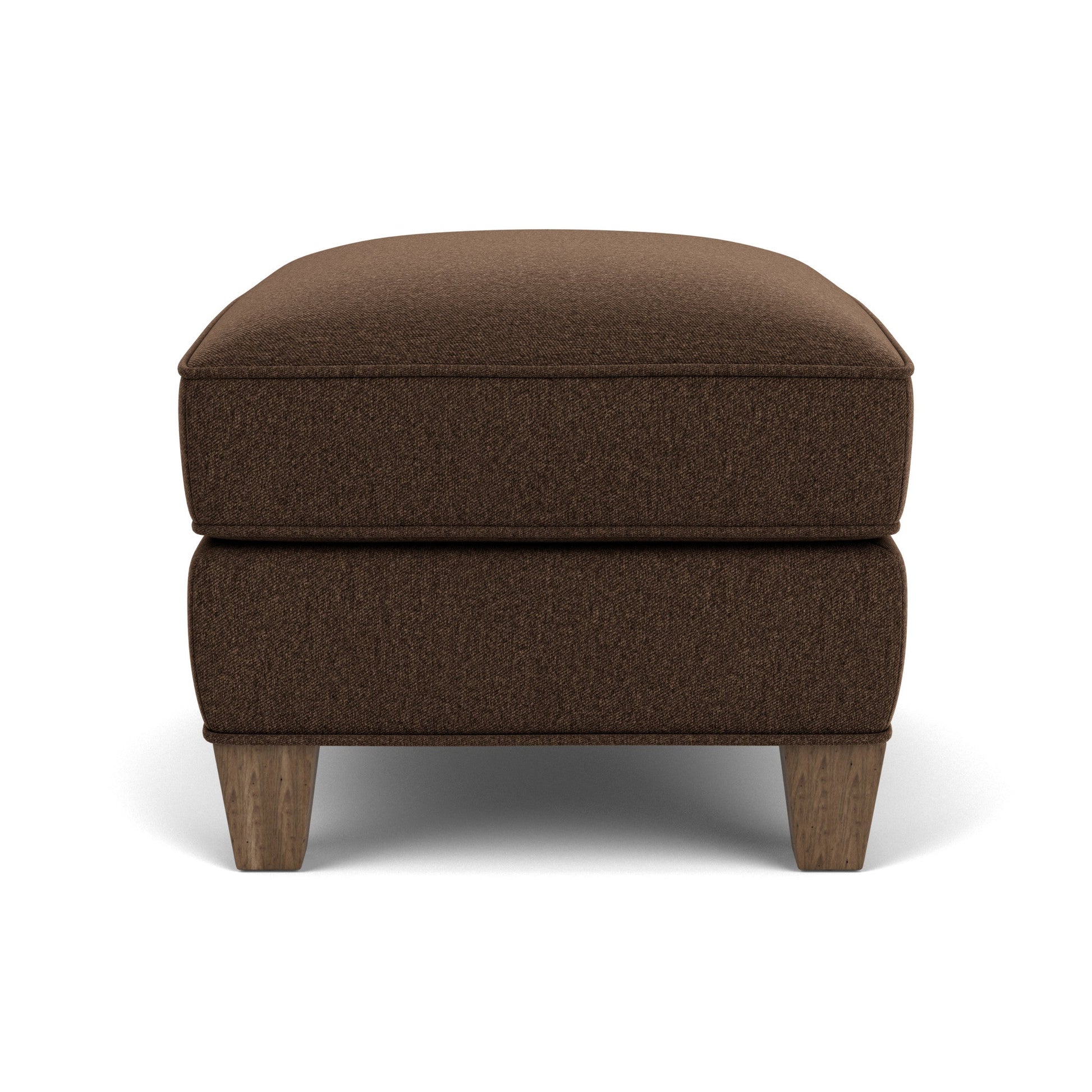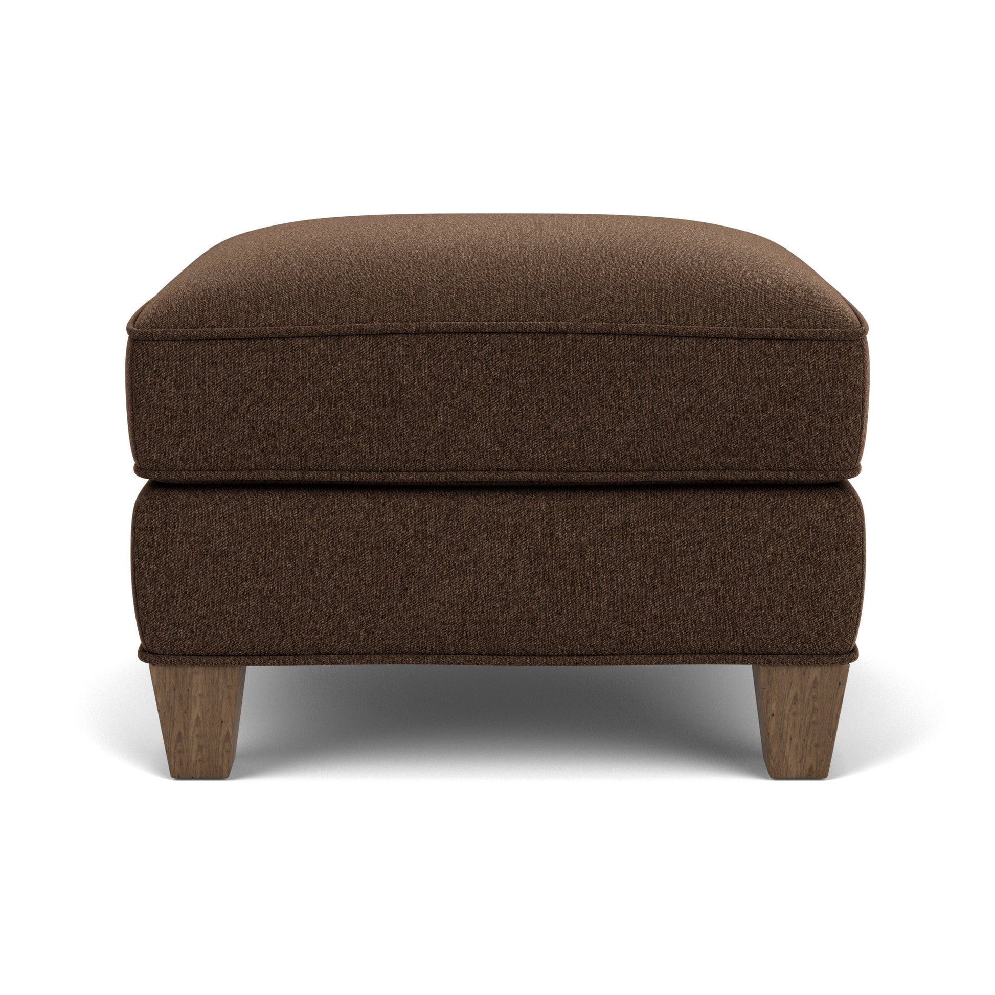 Contemporary framewith a curvy silhouette Welt cording and sweeping lines accentuate the Allison ottoman’s curvy silhouette. Tall, tapered wooden legs provide visual height to Allison’s classy appeal. Pair it with the Allison chair for style and comfort. Model Number: 0124-08 Dimensions 18H x 25W x 22L