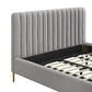 We can't guarantee your dreams will come true, but at least we can help you dream in style. The Angela bed features glam design, channel tufting and gold legs that pop against the sumptuous velvet upholstery. Available in queen or king and multiple color options.
