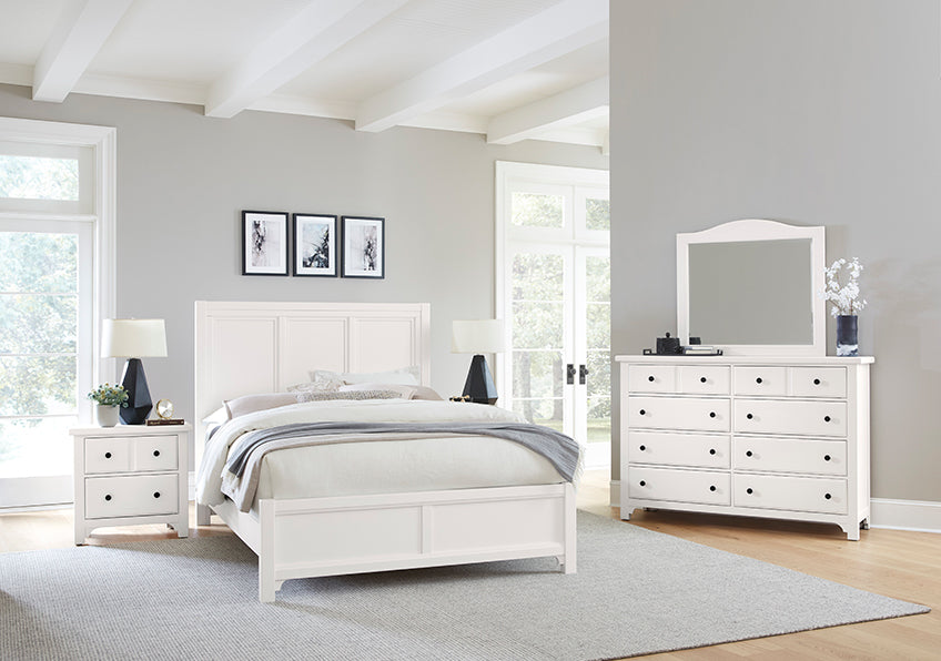 Arched mirror crafted of North American maple solids and veneers. Featuring clean lines and natural finishes with custom burnished pewter coin-edged pulls.