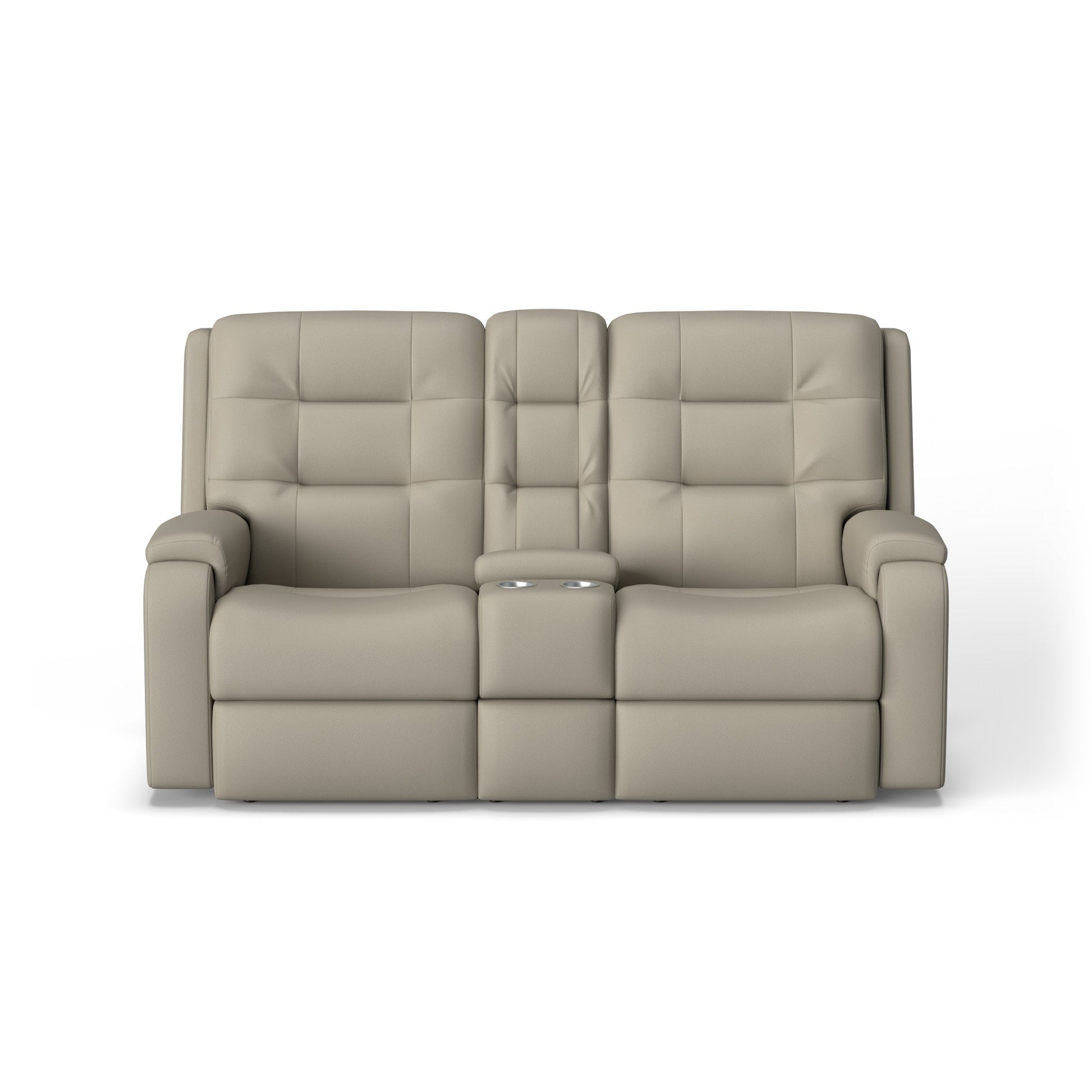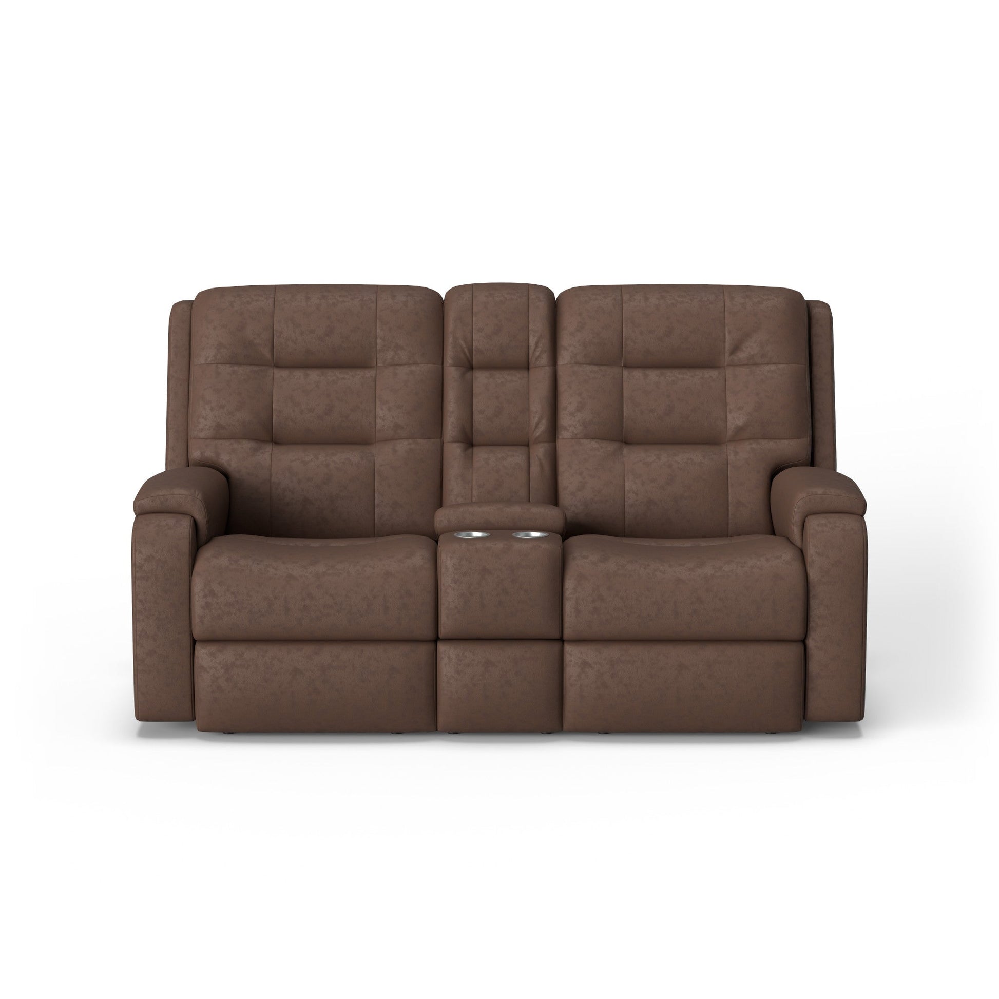 Arlo Leather Power Reclining Loveseat with Console & Power Headrests