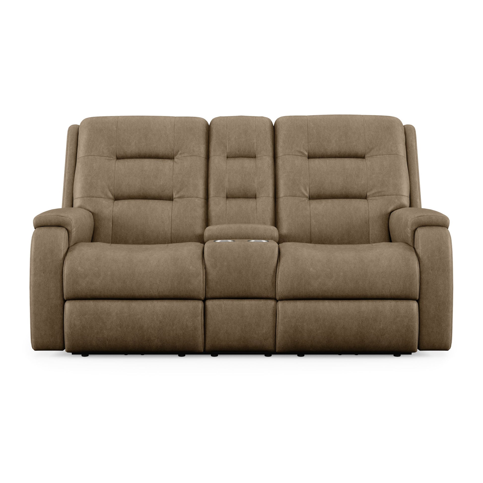 Take comfort to the next level with the Arlo Power Reclining Loveseat with Console. Available in our premium leather upholstery, this loveseat will add refinement to any living space. The spacious center console includes storage for glasses, magazines and other personal items and features two cup holders. Easy-to-access power controls with built-in USB charging ports in both arms allow you to independently adjust the headrest and recline, dialing in the right level of comfort for each person. Designed for optimal support, Arlo has pull-tufted, triple-divide back cushions that cradle your head, neck and lower back. Contoured seats take pressure off your legs as you sit, while our patented DualFlex Spring System™ provides firmness and flexibility. Rounded pad-over track arms provide a comfy place to rest your forearms—great if you’re spending hours gaming or streaming movies. To make Arlo your own, choose from more than 50 leather or leather match options.