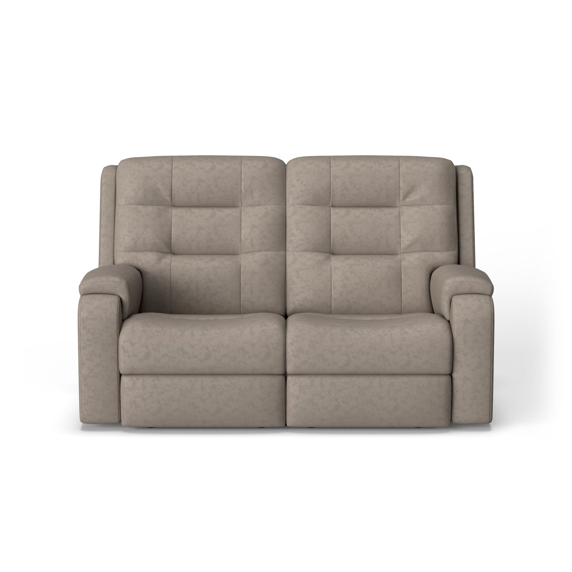 Enjoy the high-end look of leather and the comfort of an ergonomic loveseat built for two with the Arlo Power Reclining Loveseat with Power Headrests. With a power control in each arm, both people sitting can independently adjust the recline and headrests to suit their preference in the moment. And with USB charging ports built into the controls, you don’t have to worry about your devices dying. Pull-tufted, triple-divide back cushions keep your head, neck and lower back supported, while contoured seats with chaise pads take pressure off your legs as you sit. Rounded pad-over track arms give you a place to rest your forearms and help you stay relaxed. With our patented DualFlex Spring System™, you can enjoy the loveseat’s pleasing mix of firmness and flexibility for years to come. Choose from more than 50 options of leather or leather match upholstery to create a look that’s all your own.