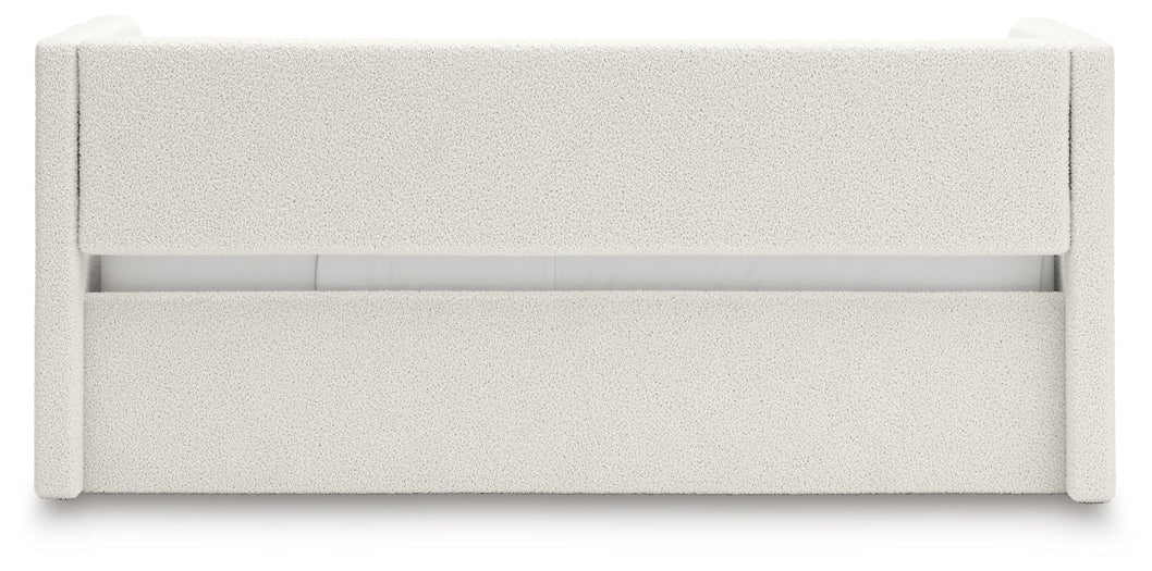 | Details | Includes upholstered back panel and side panels, under bed storage unit, rails and roll slats , Made with engineered wood (MDF/particleboard/plywood) for the right balance of affordability and durability , Smooth, light finish with replicated oak grain, Decorative laminate replicates natural or man-made material surfaces with consistent color, pattern and texture , Polyester upholstery , Knobs with black finish, 2 smooth-gliding storage drawers, Drawer interiors are lined with a faux linen laminate for a clean, finished look, Daybed uses mattress only, no box spring required , Mattress available, sold separately, Assembly required | |