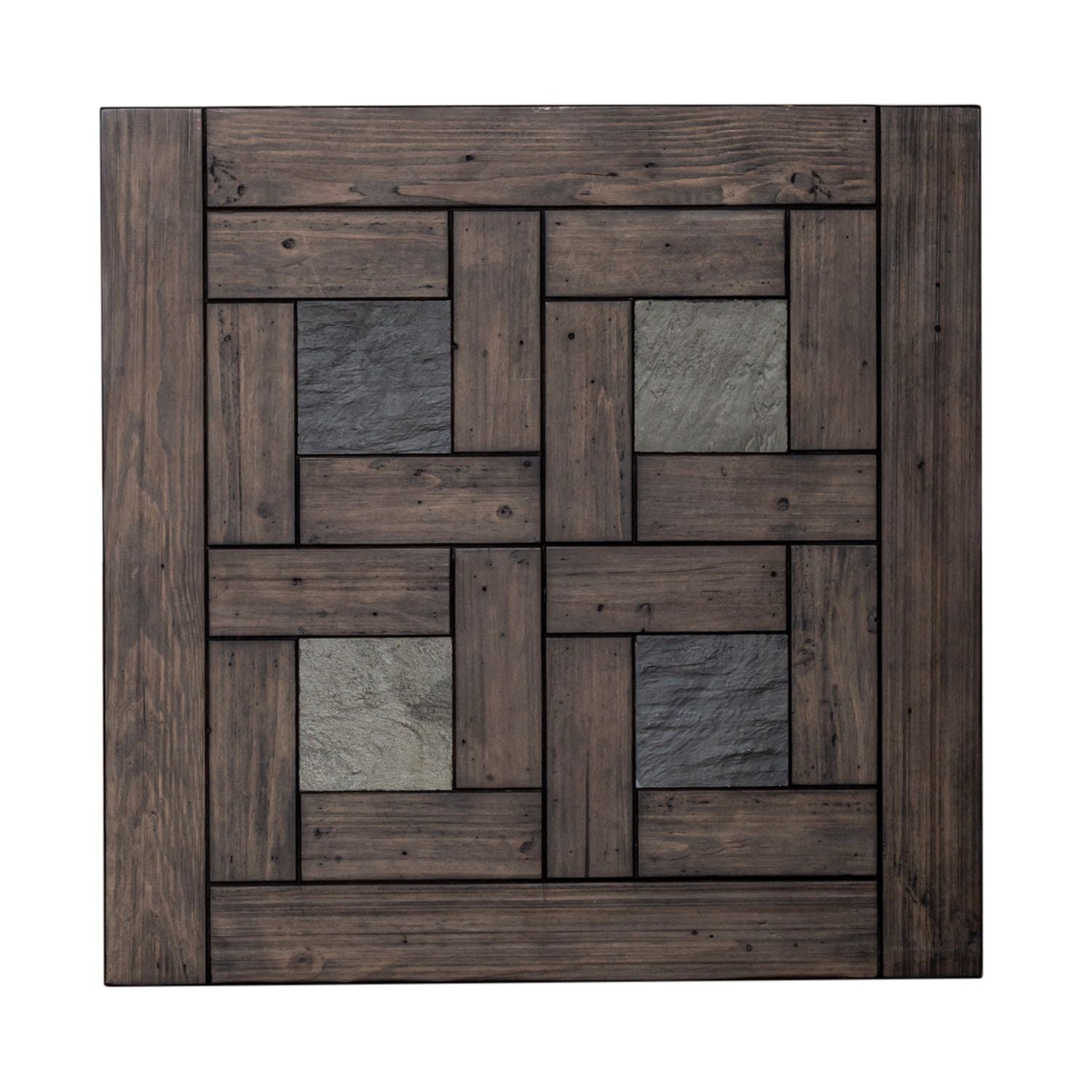 If you enjoy rustic the Arrowcreek end table is for you. Finished in a weathered stone with slate tile inserts in a basket weave design on top, one full extension drawer with finger pull, tapered legs and bottom shelf for additional storage. Crafted with solid reclaimed pine and pine veneer with a bottom shelf for additional storage.