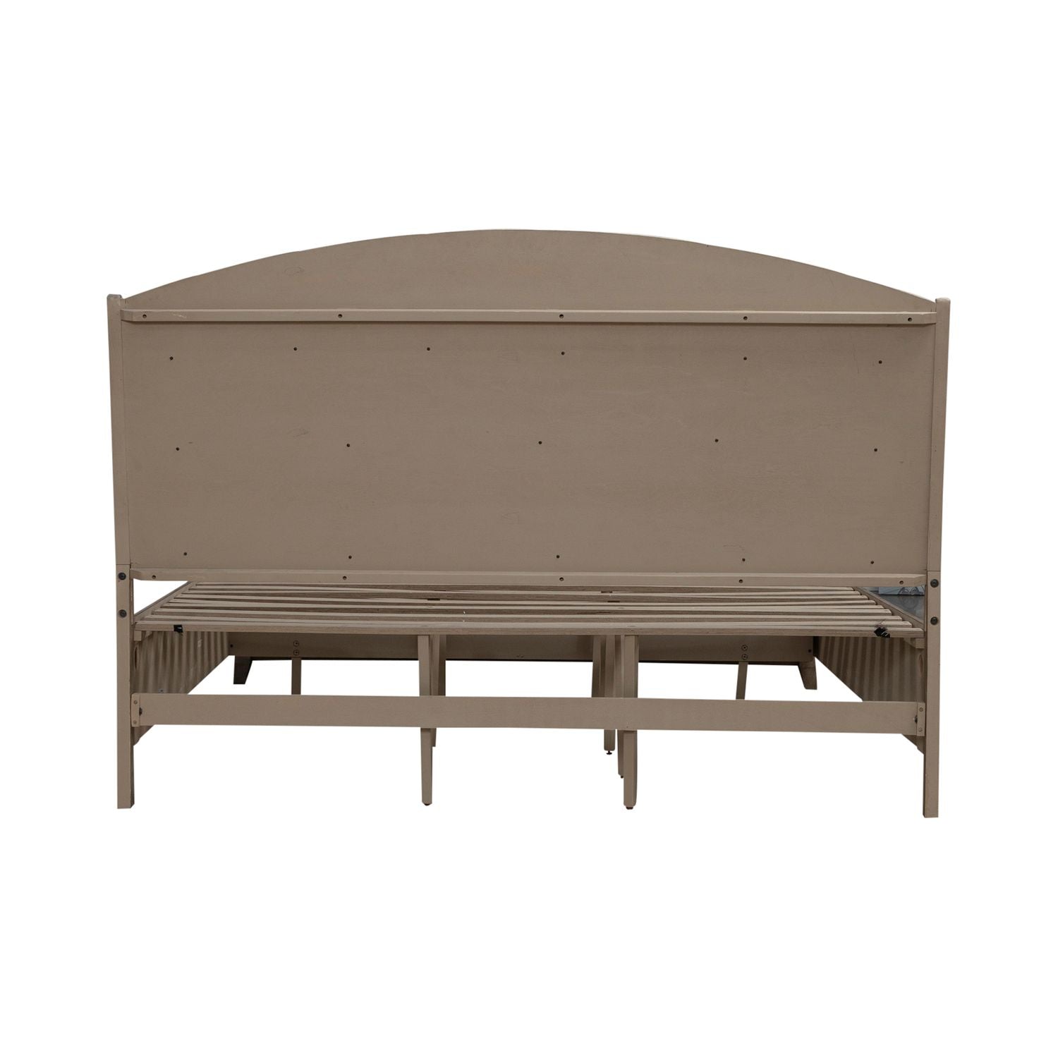 Create a calm and peaceful oasis with the Avalon king upholstered storage bed. Crafted with excellence using Rubberwood solids and Split Heart White Oak veneers, this bed features a Burnished Beige finish. The journey into the realm of the Avalon king upholstered storage bed begins with the softly arched cap rail of the headboard. This gentle curvature, reminiscent of a quiet sunrise, sets the tone for a space where tranquility and sophistication coexist. The heart of the headboard unfolds in the wood framed upholstered panel in Oatmeal Linen. The first thing that will catch the eye with the storage footboard is the graceful bow shaping. The gentle curve adds a touch of sophistication, creating a visual allure that sets it apart from conventional footboards. The subtle design element speaks volumes about the meticulous craftsmanship that went into its creation. The top of the storage footboard is transformed into a luxurious oasis with its padded upholstered bench style seat. To accentuate this lavish comfort, a meticulously placed nail head trim adorns the edges of the upholstery on the headboard and footboard. These details aren’t just ornamental, but a testament to the meticulous craftsmanship that elevates the upholstered storage bed beyond the ordinary. The nail head trim serves as a subtle contrast against the gentle Oatmeal Linen upholstery, adding a touch of sophistication and completing the bed’s aesthetic allure. There are two interior storage drawers on the footboard, perfect for clothes, blankets, and linens, that offer a cedar lined bottom panel and is accented with Antique Brass bar pull hardware. The footboard’s floating style base and angled tapered feet contribute to its contemporary allure. Transform your bedroom into a haven of grace and convenience with the Avalon king upholstered storage bed.