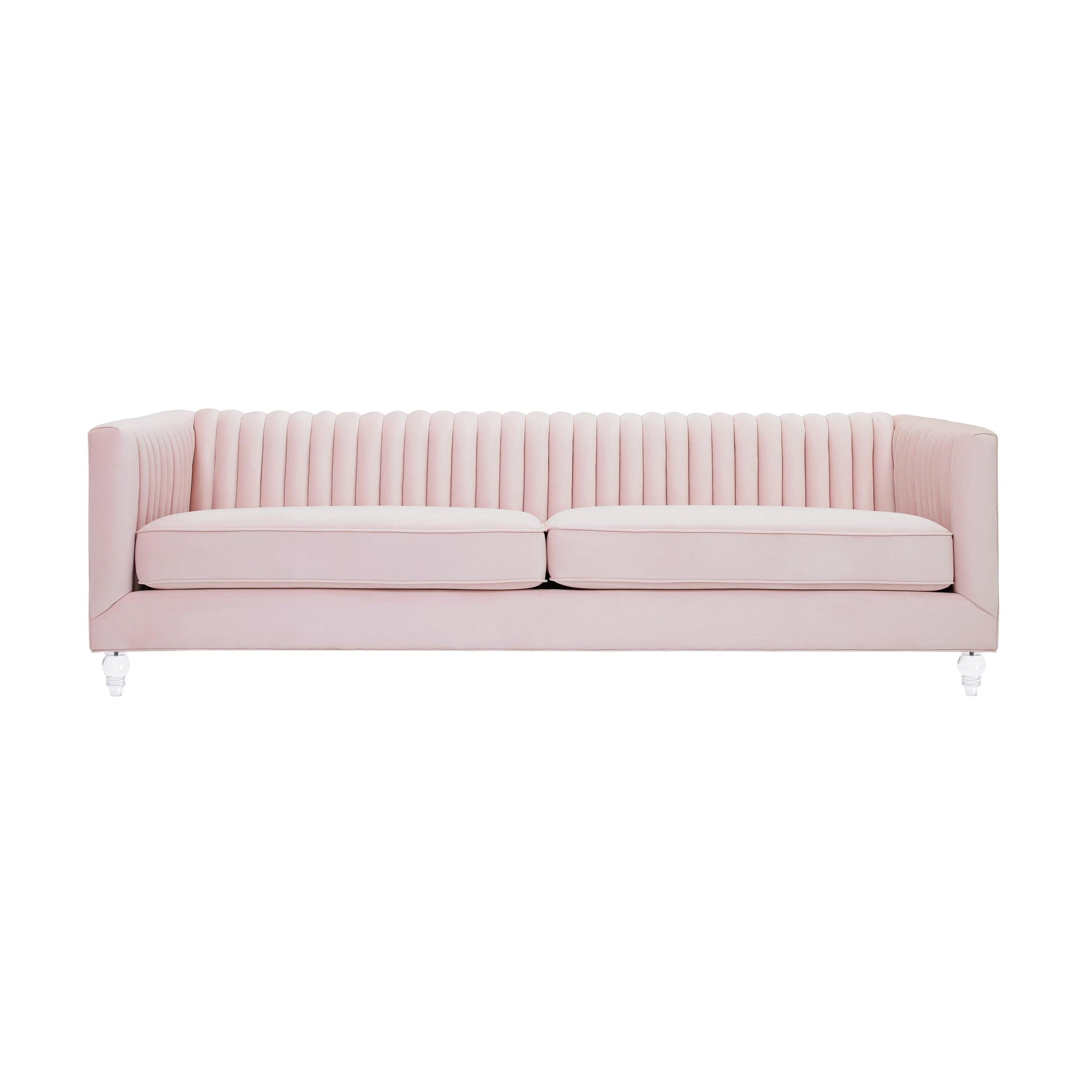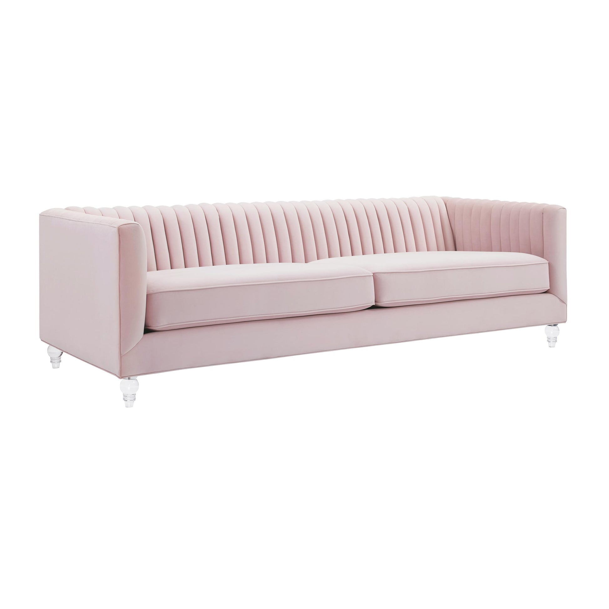 Your room will soar to new heights with the stylish Aviator sofa. Offering a contemporary flair with a touch of sophistication, this velvet sofa is unique yet comfortable; from the perfect pleats to the lucite legs and rich color options.