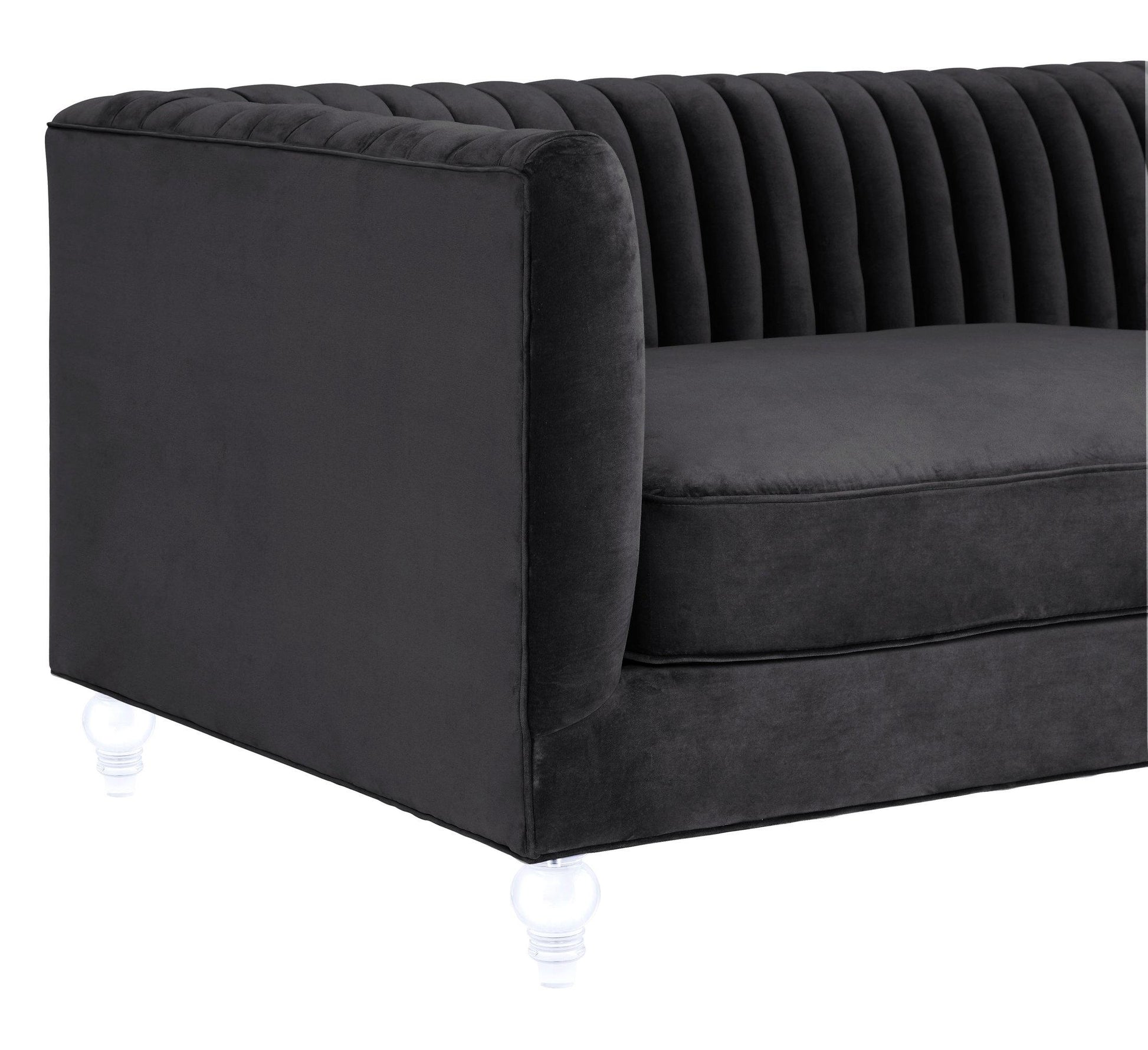 Your room will soar to new heights with the stylish Aviator sofa. Offering a contemporary flair with a touch of sophistication, this velvet sofa is unique yet comfortable; from the perfect pleats to the Lucite legs and rich color options.