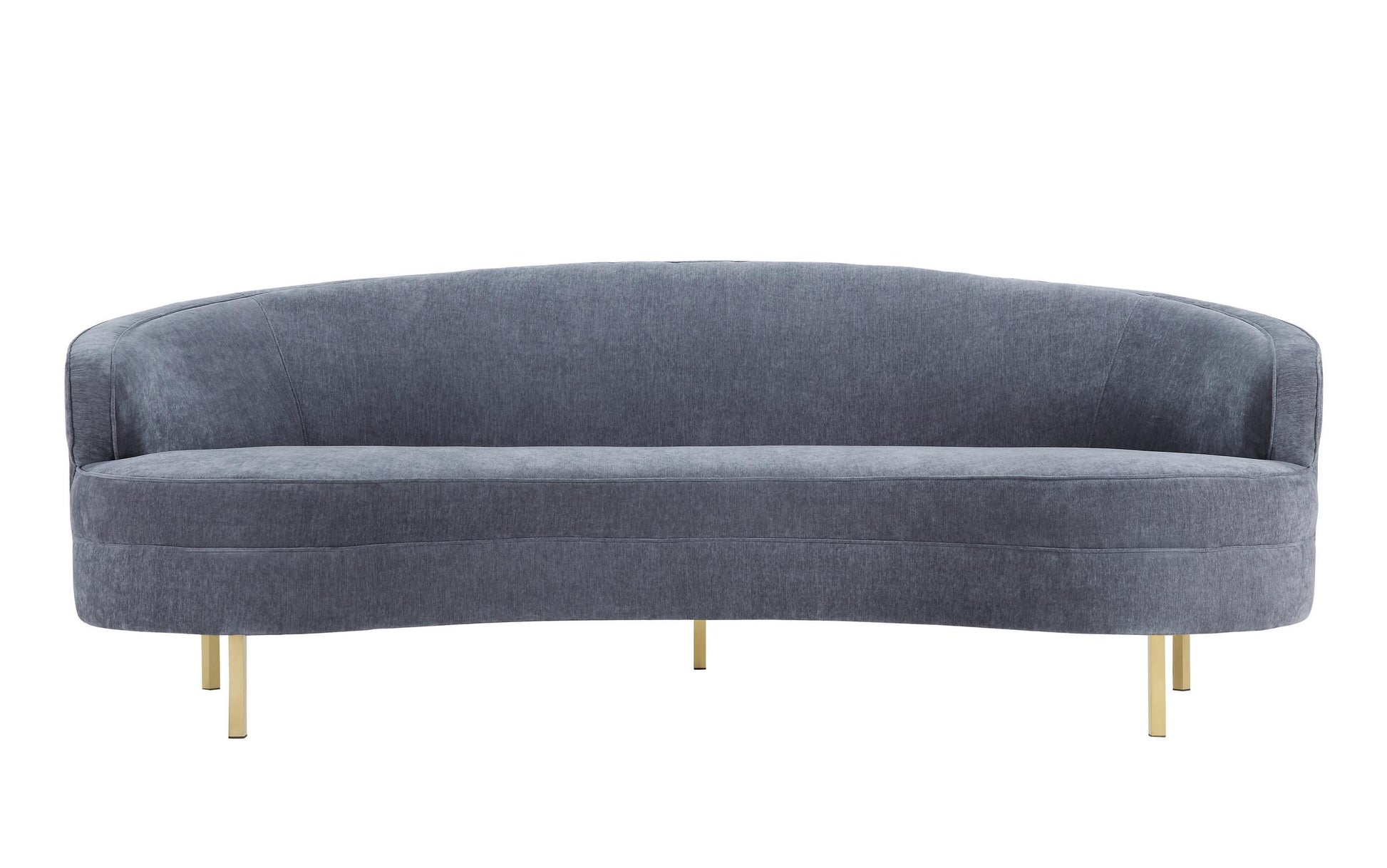 With its elegantly curved silhouette and luxurious velvet upholstery, the Baila Sofa from T V Furniture is beautiful from all angles. We love the gleaming gold legs and the neutral hue which makes it fresh and chic.