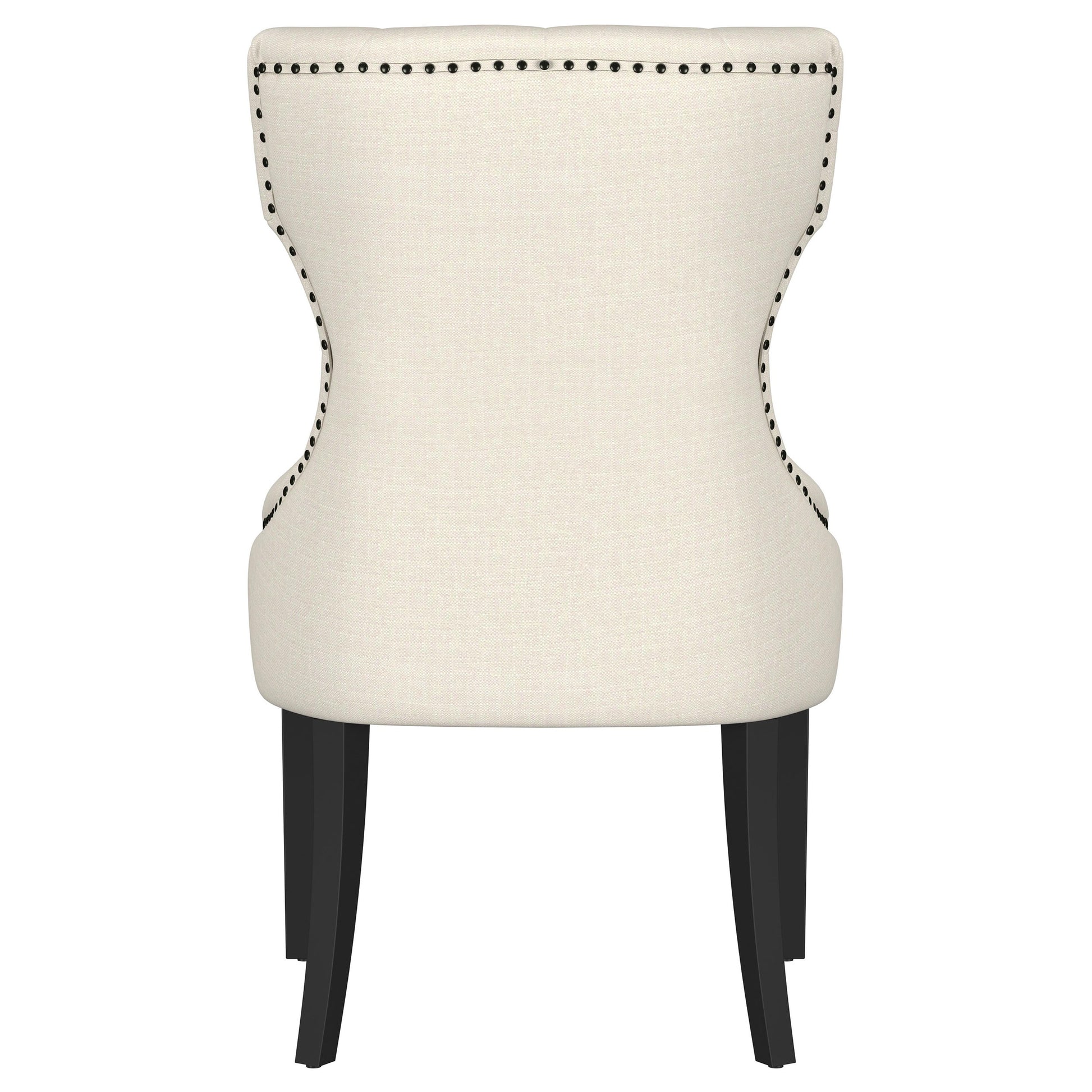 • Modern tufted dining chair creates a rich, warm ambiance with a wingback profile