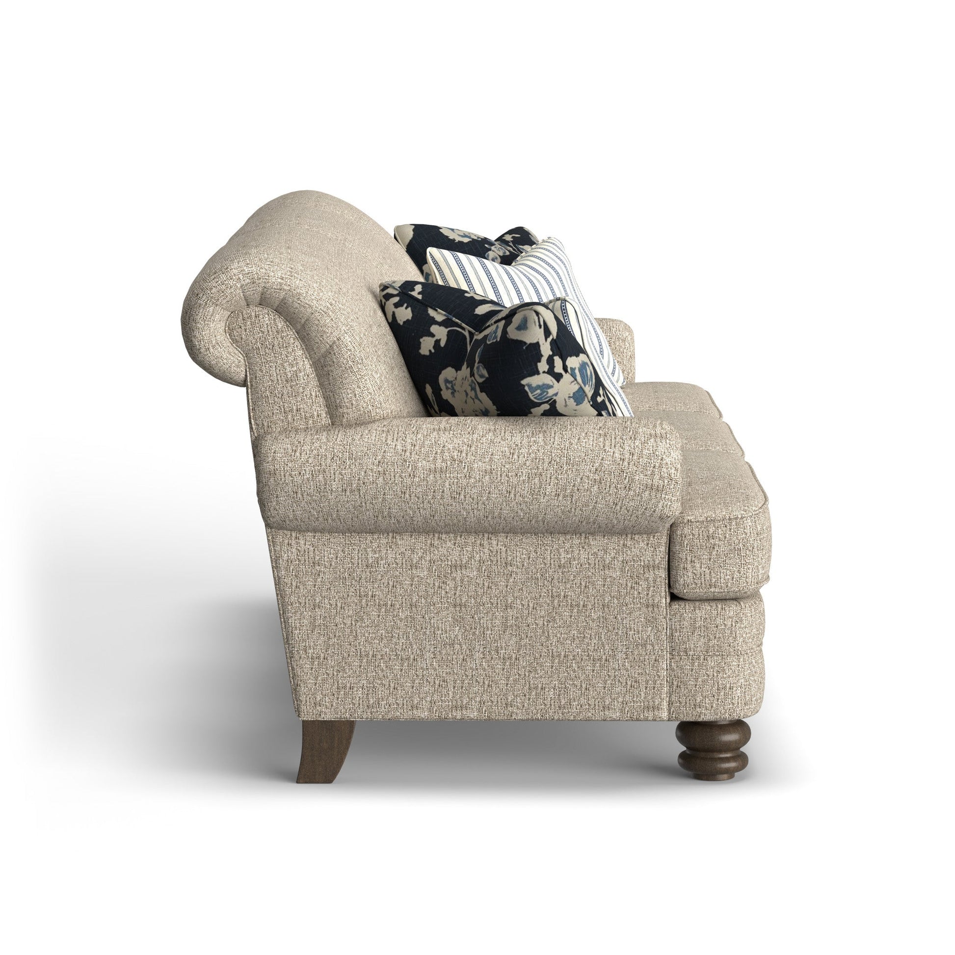 Soft styling complements classic details Bay Bridge has the look of a family heirloom and the feel of brand-new upholstery. Look closer and you'll notice all the vintage details: tightly rolled arms, a rounded front rail, back and side panels lined with welt cord, and round bun feet. Model Number: 7790-31 Dimensions 37H x 85W x 42L