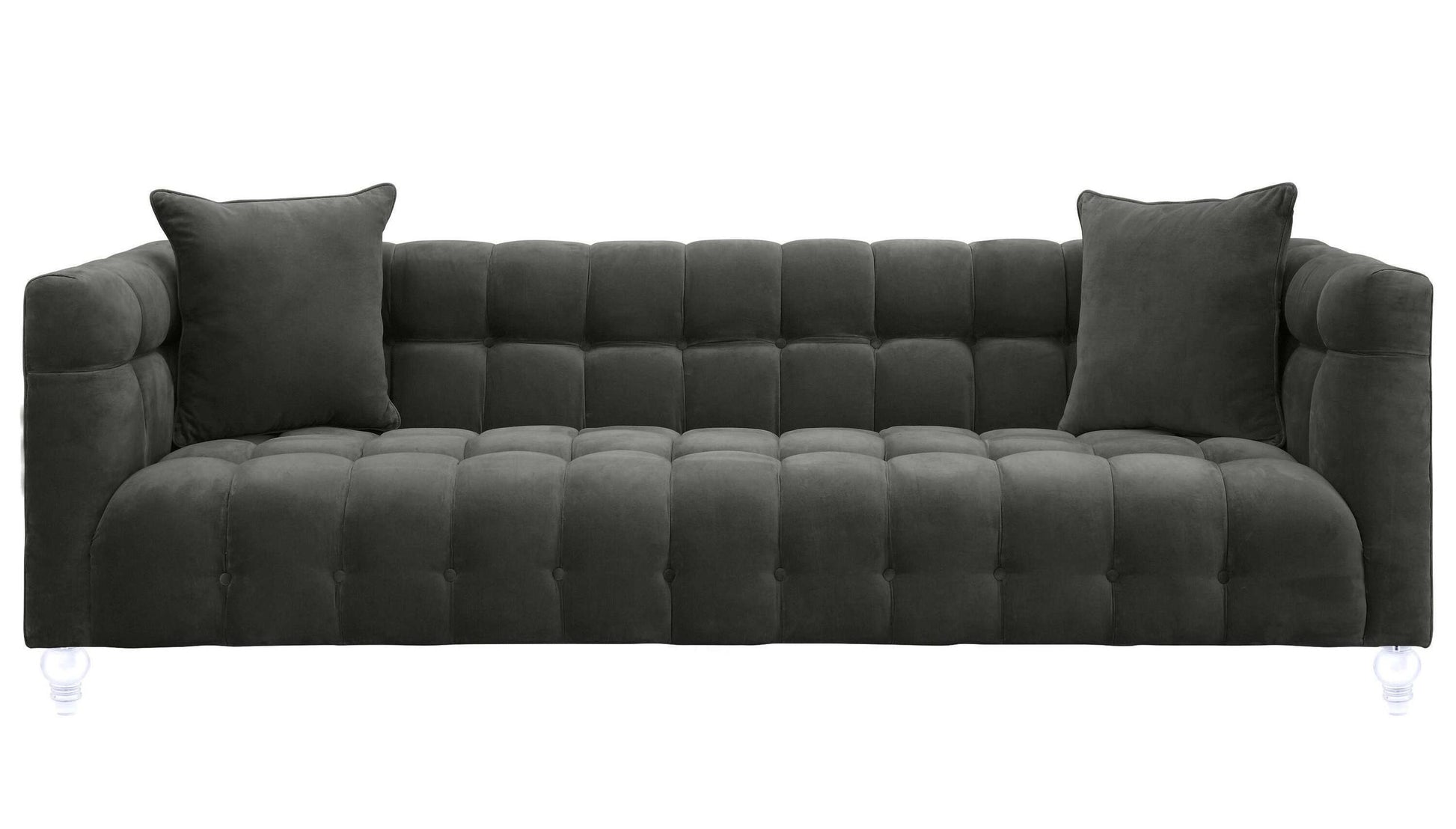 Our Bea sofa is a true beauty. This rich velvet upholstered sofa is designed with a deep seat, luxe tufting and Lucite legs. Bea adds style and color to any room.