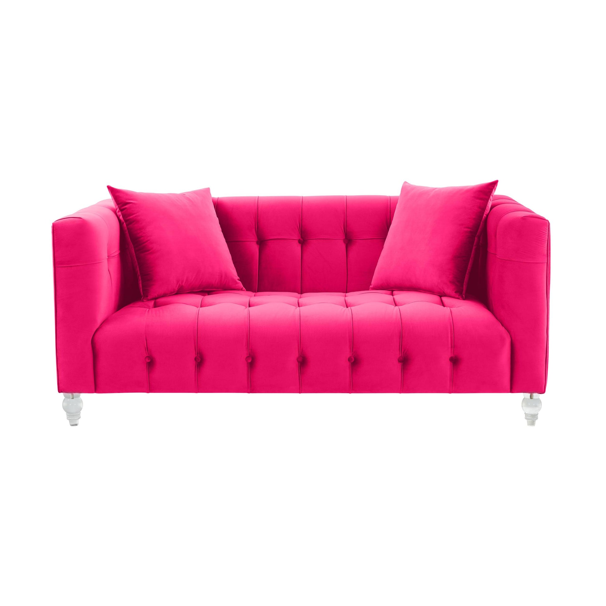 Our Bea Loveseat is a true beauty. This rich velvet upholstered piece is designed with a deep seat, luxe tufting, and Lucite legs. Bea adds style and color to any room. This vibrant piece comes in sofa size and multiple color options.