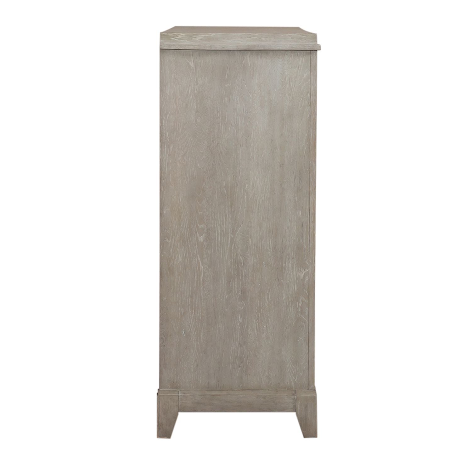 Add luxury and sophistication to your bedroom with the Belmar 9-drawer bureau dresser. The washed taupe and silver champagne finish is accented by the graduated drawer front moldings and custom satin nickel hardware. The grand scale of this piece makes it perfect to organize all your belongings in the 9 full extension drawers, where the bottom drawers are equipped with dust proofing to protect your belongings.