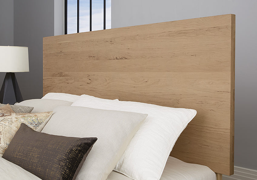 Ben’s Plank Bed features a clean line transitional style headboard with a 1-inch-thick piece of solid American Cherry paired with wide top rail and footboard giving it a contemporary platform look. Available in Queen, King, or California King.