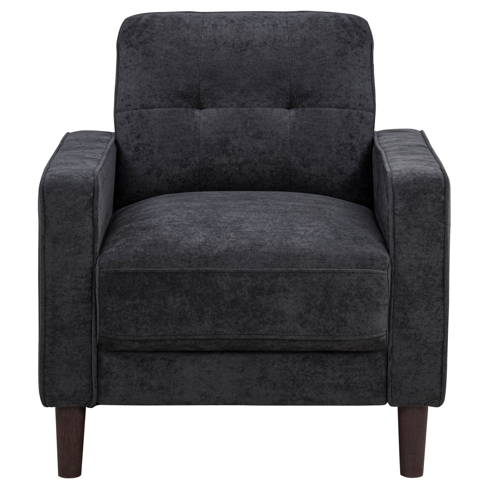 • Accent chair with slim track arms and tailored grid-tufted back cushion for refined comfort