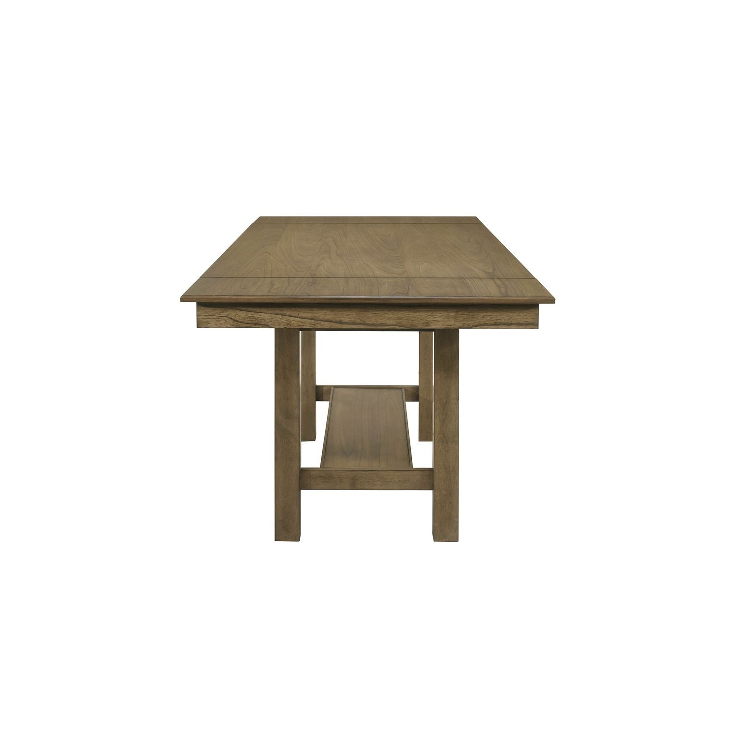 A masterful fusion of rustic charm and contemporary design, the Brook Bay gathering trestle table is destined to be the centerpiece of your dining space. Crafted with excellence using Rubberwood solids and Mindy veneers, this table features a Sandstone finish. The table boasts two 14-inch refectory leaves on each end, offering seamless expansion and contraction to accommodate gatherings of all sizes. Whether hosting intimate family dinners or entertaining a crowd, this table adapts effortlessly to your needs. Square block legs provide sturdy support and lend a modern edge to the design, while the over-scaled center trestle adds a sense of architectural sophistication, anchoring the table with undeniable presence. Elevate your dining space or kitchen area with the Brook Bay gathering trestle table.