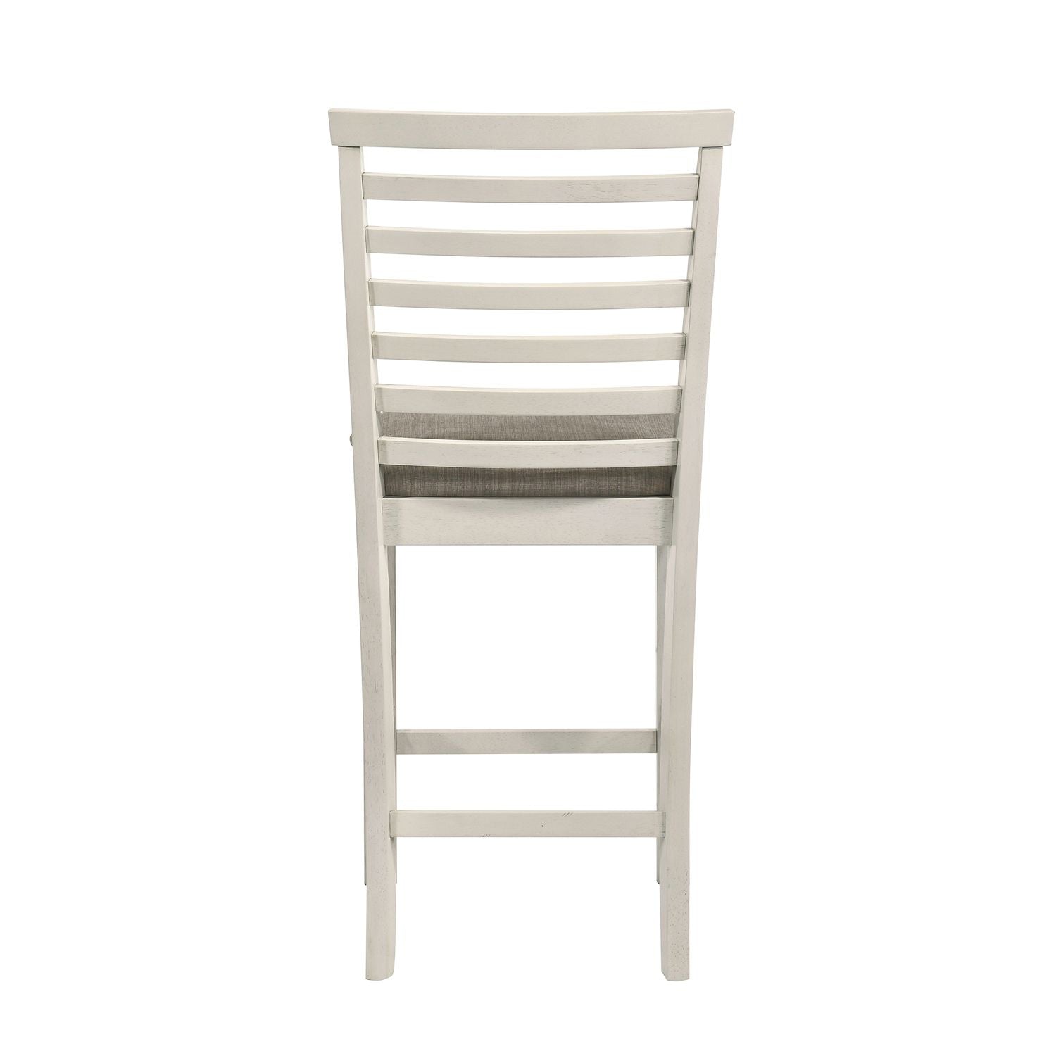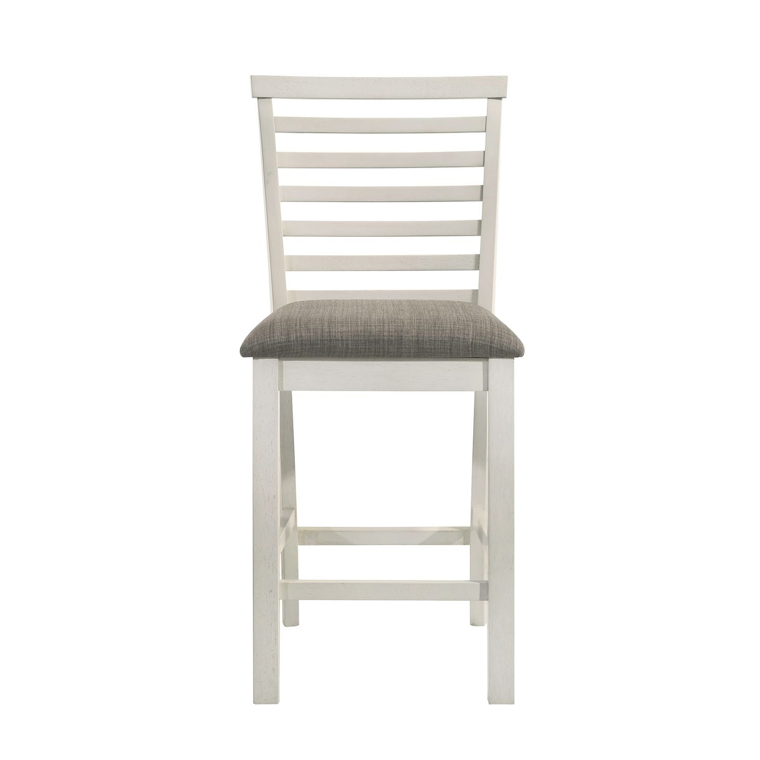 Sleek and comfortable, the Brook Bay upholstered ladderback counter chair is the perfect blend of style and functionality. Crafted with excellence using Rubberwood solids, this chair features a Textured White finish. This chair effortlessly combines contemporary design with comfort, featuring a sleek ladderback design that adds a touch of sophistication to your space. Crafted with precision, the ladderback provides ample support while infusing the room with a sense of understated elegance. For optimal comfort, the chair boasts a padded seat upholstered in luxurious Grey Linen fabric. Sink into plush softness as you dine or unwind, enjoying every moment spent in this inviting seat. Designed with practicality in mind, the chair's square tapered legs not only contribute to its sleek aesthetic but also flow seamlessly into the footrest, offering additional support and relaxation for your legs. To protect your flooring from scratches and marks, nylon chair glides have been thoughtfully added, ensuring both functionality and longevity. Elevate your dining space or kitchen island with the Brook Bay upholstered ladderback counter chair.