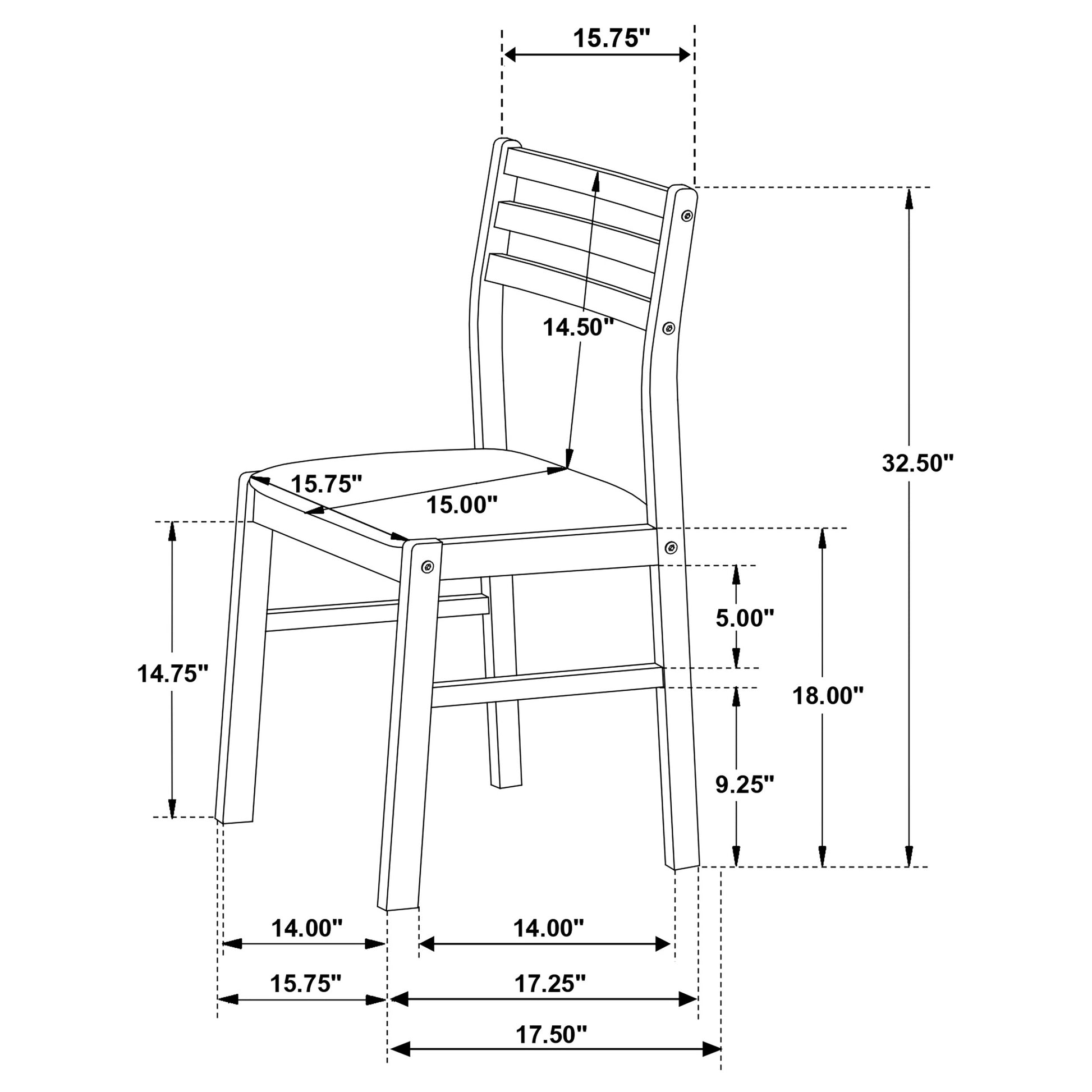 • Three-piece dining set with round drop-leaf table and two upholstered ladder-back chairs