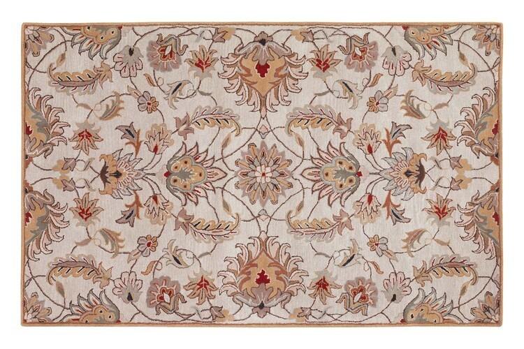Plush pile; hand tufted. Available in many sizes. Made in India. Vacuum, no beater bar. Professionally clean.