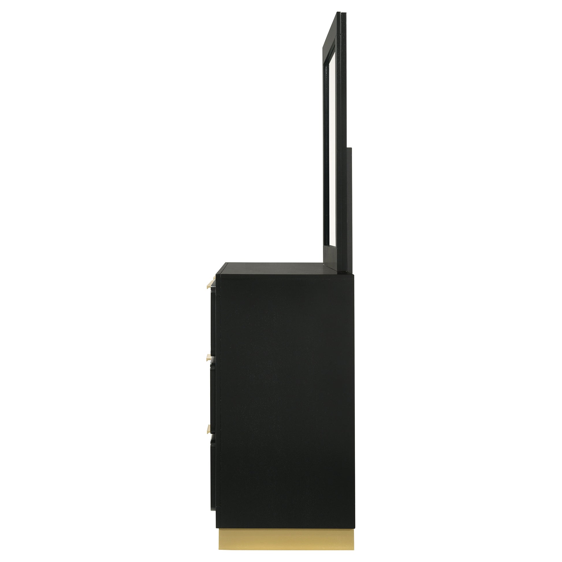 • Six-drawer dresser with Mid-Century Modern design in wood and wood products