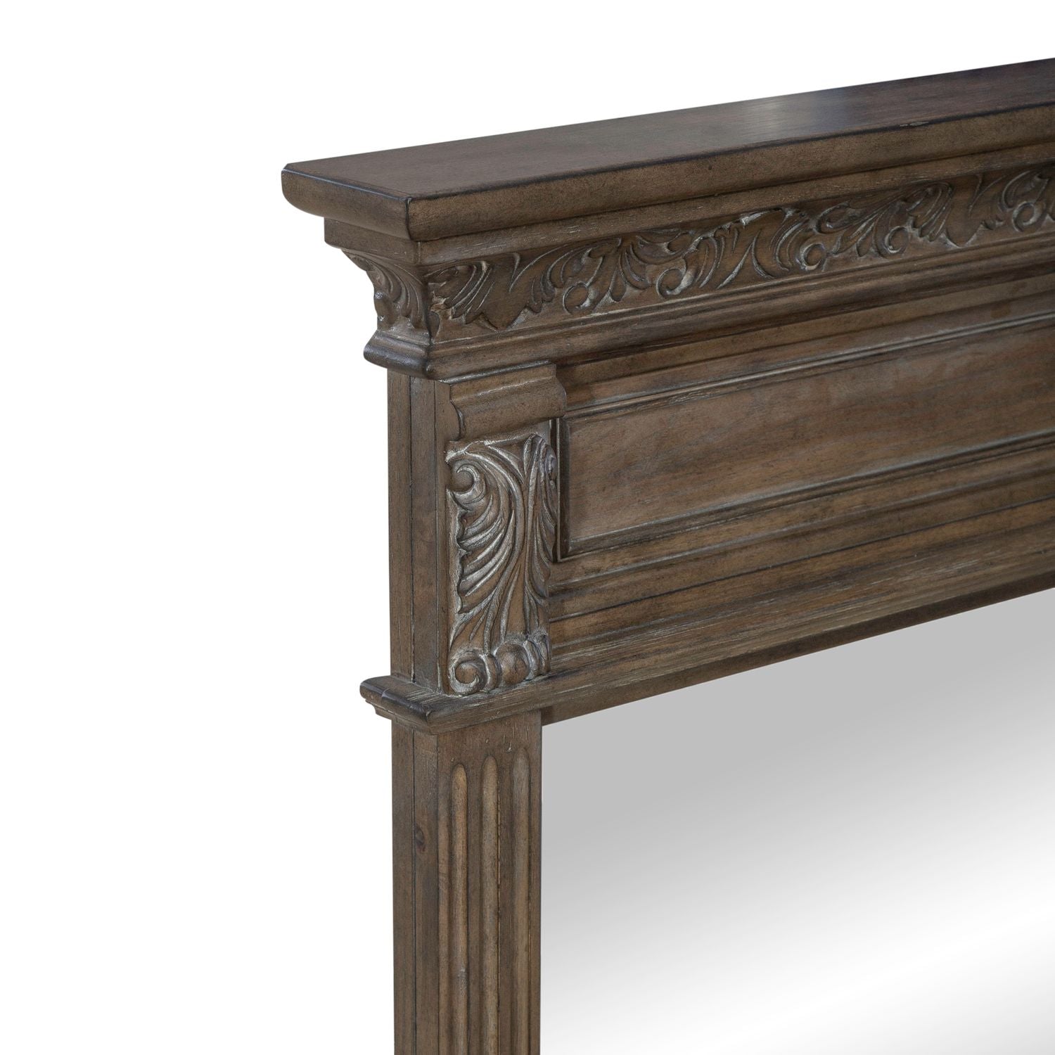 Indulge in luxury with the Carlisle Court landscape mirror. Crafted with excellence using rubberwood solids and rustic hickory veneers, this mirror features a Chestnut with Gray Dusty Wax finish. The mirror offers a wide landscape view and features carved corbels and fluted pilasters. The top crown of the mirror displays acanthus leaf carvings. The 1” beveled edge adds an additional elegant touch. Attach this mirror to the Carlisle Court nine drawer dresser with the included bolt-on supports. Combine the grand feel of the past with today’s luxurious lifestyle with the Carlisle Court landscape mirror.