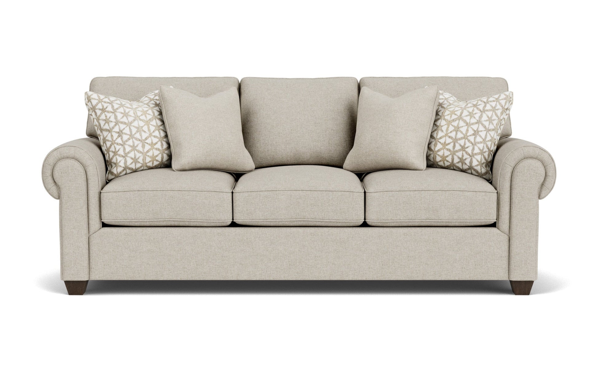 A unique wrap-around padded armrest on Carson’s large-scale rolled arm is highlighted with pleats and welt cording. Optional nailhead trim tightly spaced lines the exposed arm fronts for a fun, visual effect. Relax into Carson’s overstuffed seat and back cushions after a long day and feel the stress melt away.