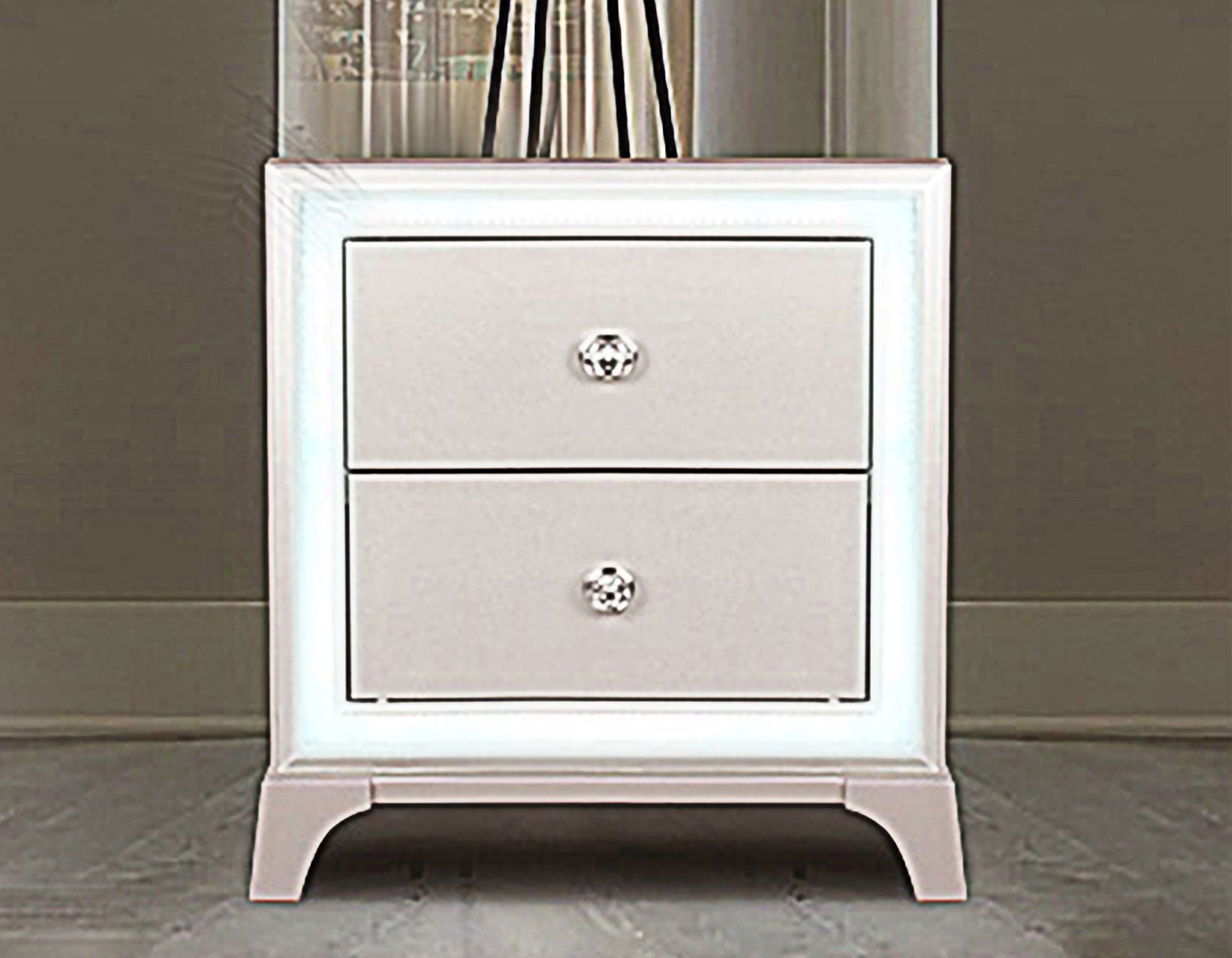 Cassie Illuminating Glam Nightstand, Shimmering Pearl Finish