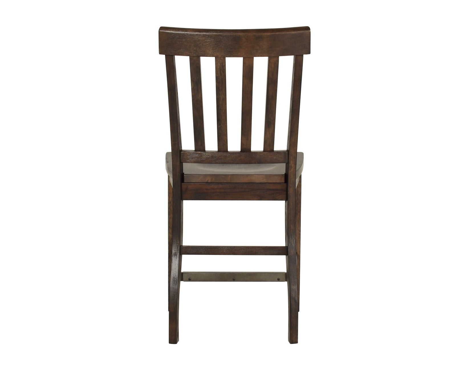 The Cayla Counter stool are finished in your choice of heavily distressed antique white or wire brushed dark oak. A vertical slat back topped with a solid wood cap rail and curved back legs give the chairs a modern farmhouse style. Scooped seats for comfort and a three-sided stretcher for added strength and stability make these counter height chairs a great addition to any dining space. Your purchase includes 2 counter chairs.