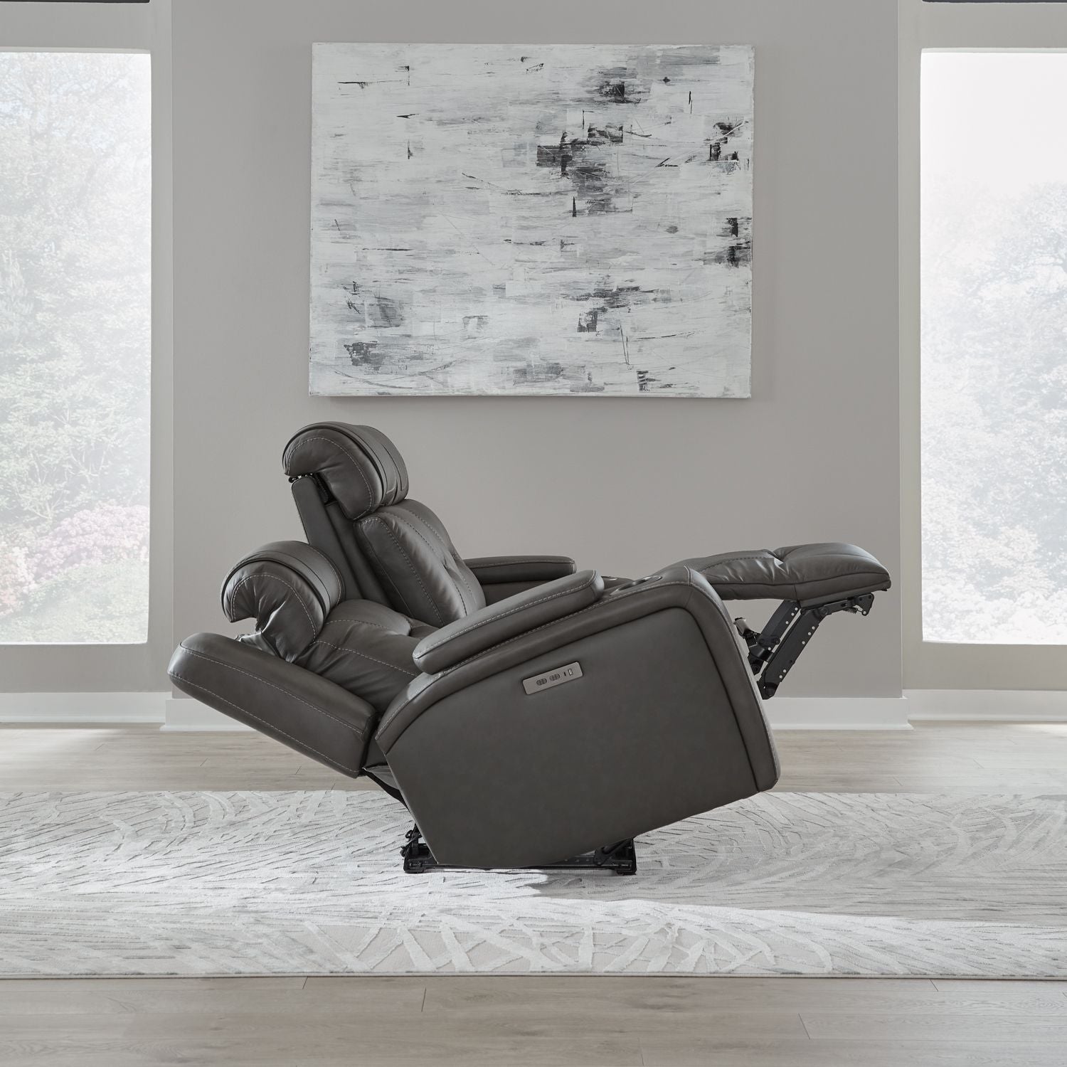 Experience the pinnacle of comfort and innovation with the Chapman dual zero gravity power recline sofa with power articulating headrest. Designed to enhance your well-being, the sofa features dual zero gravity power recline technology that promotes improved blood flow and posture, offering unparalleled relaxation. Entertainment meets sophistication with built-in, hidden Bluetooth speakers that seamlessly pair with your devices upon approach. Immerse yourself in surround sound for movies or enjoy your favorite music with exceptional clarity. For added convenience and versatility, the center seat back is powered and folds down to reveal a state-of-the-art iTable. This innovative feature includes two wireless charging pads that transform into cupholders at the touch of a button, along with a USB-A and USB-C charging port for effortless device charging. Additional USB-A and USB-C ports at each end of the sofa ensure all your gadgets stay powered. Enhancing functionality further, the center seat headrest flips up to unveil two multi-strength and adjustable reading lights, perfect for cozy evenings with a book. Thoughtful storage solutions abound with hidden compartments in the padded arms, allowing you to keep essentials close at hand yet neatly organized. The sofa is as stylish as it is comfortable, boasting a deep pull in back design, perforated double-layered headrests, and bucket seating that cradles you in luxurious support. Elevate your home entertainment experience with the Chapman dual zero gravity power recline sofa with power articulating headrest, where cutting-edge technology meets timeless comfort for a truly exceptional seating solution.