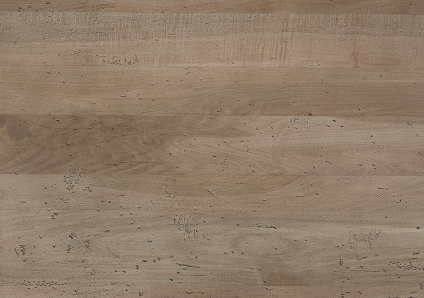 Add versatile and stylish storage to your bedroom with this five drawer chest. 2 inch solid maple tops with planked end panels that display a patchwork of stunning grey streaks; wormholes; and graining. Bleached grey tones are reminiscent of sunbaked driftwood. Oval key escutcheon plate on the top drawers with a vintage nickel drawer pull.