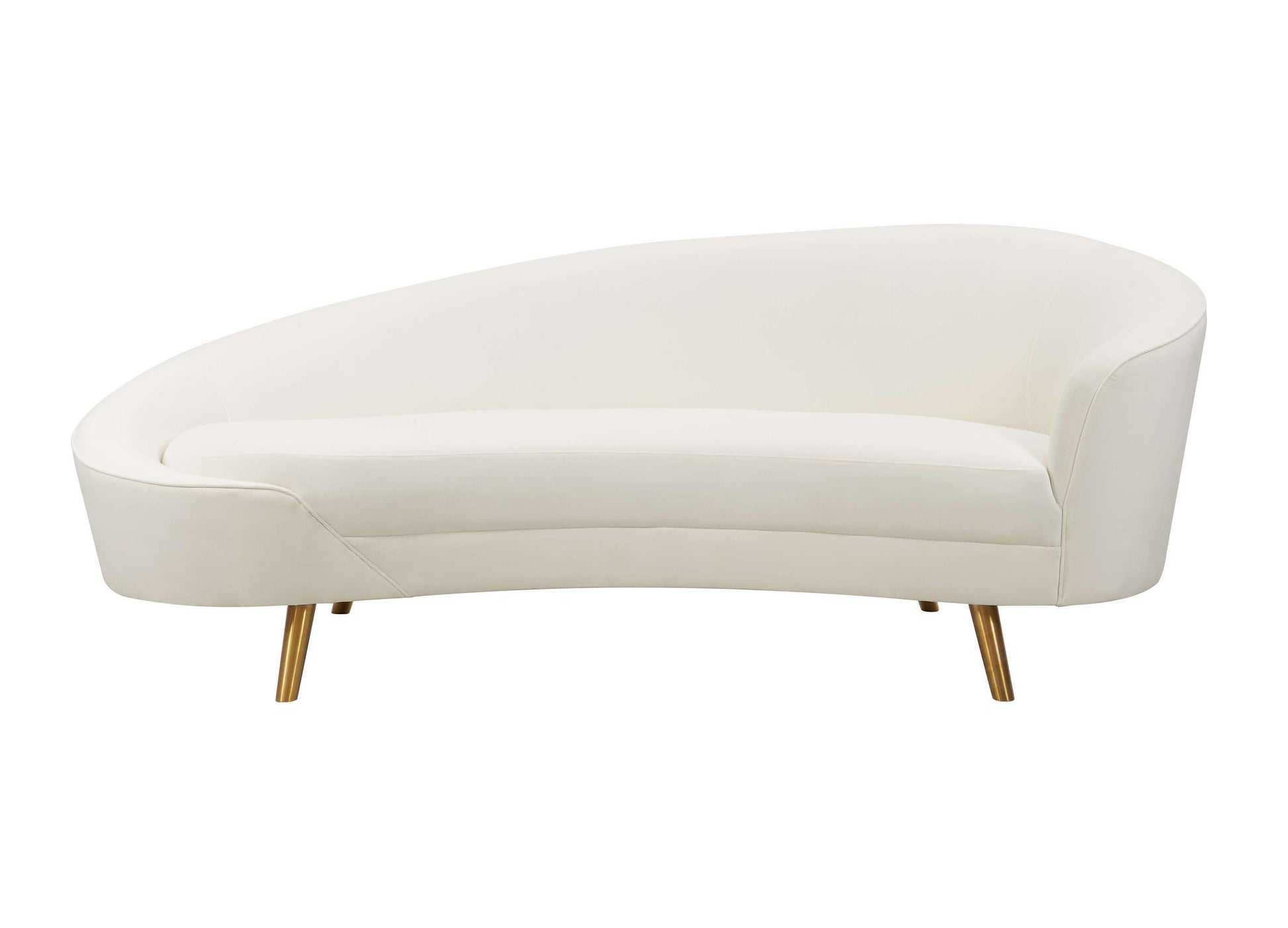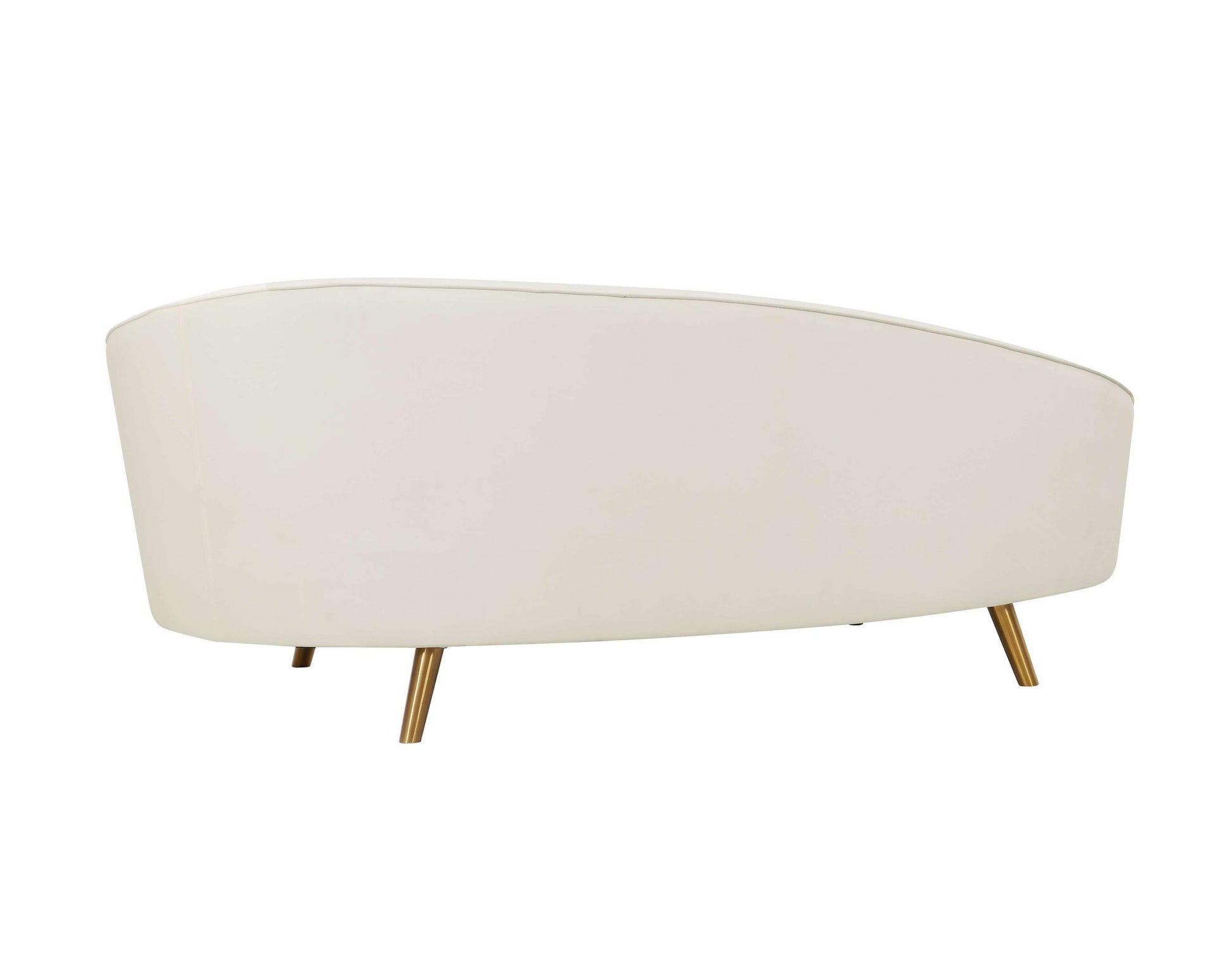 With its sloped edges and striking color, the Cleopatra sofa adds a burst of fresh style to your home. Its plush velvet upholstery, piped stitching and glamorous gold legs come together in perfect harmony to create this showstopper. Available in various deluxe color options.